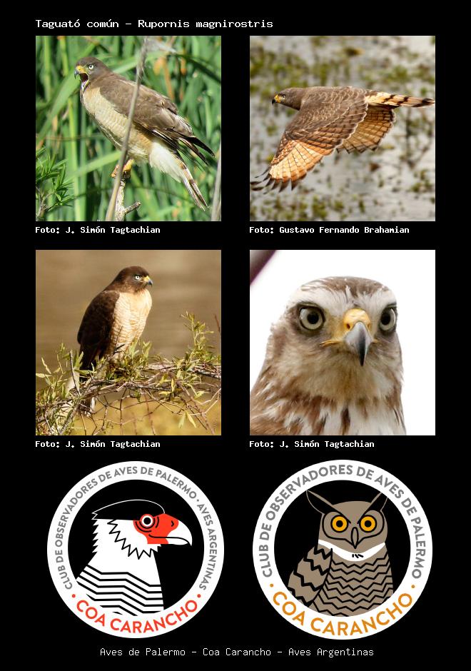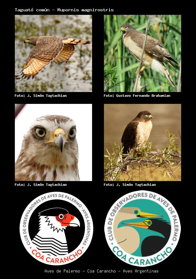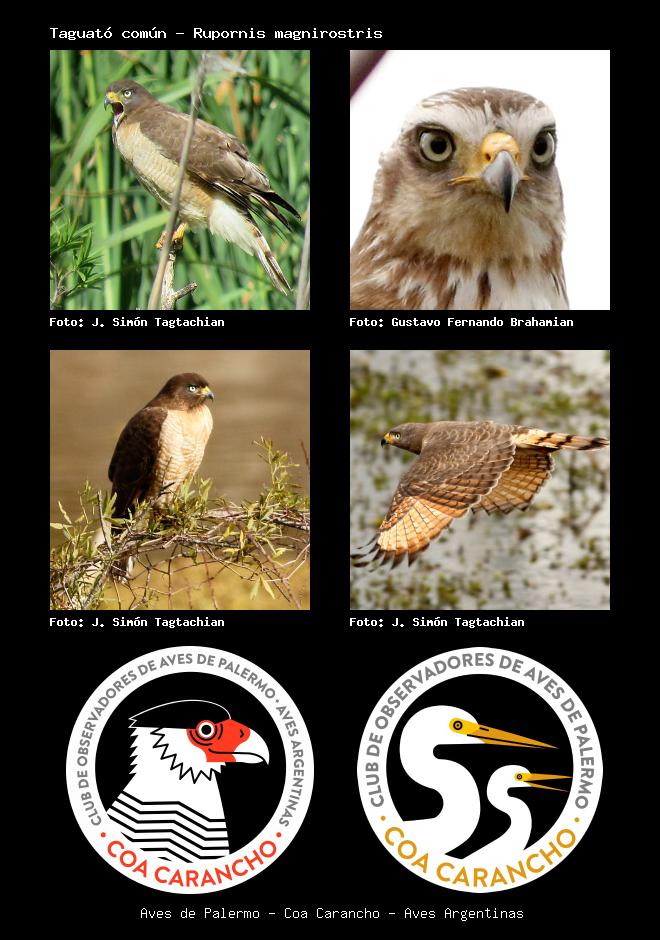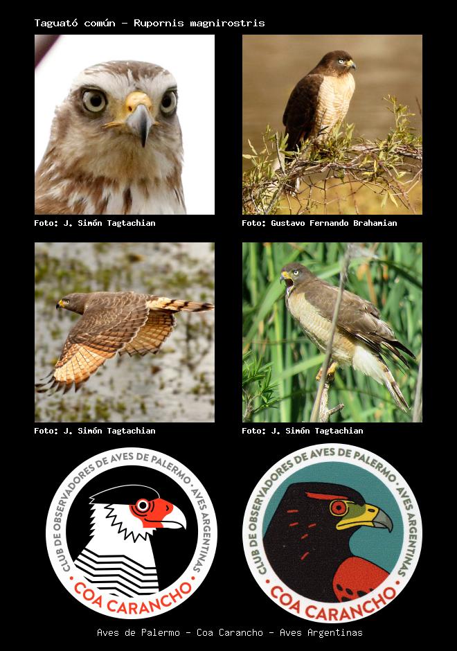 | Taguató común Roadside Hawk Rupornis magnirostris Familia: Accipitridae Código: 3008 - Orden: 83 | ![]() J. Simón Tagtachian | ![]() Gustavo Fernando Brahamian |