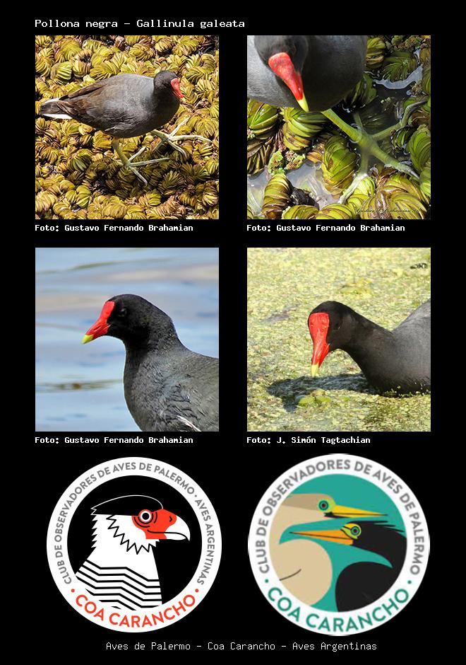 | Pollona negra Common Gallinule Gallinula galeata Familia: Rallidae Código: 3207 - Orden: 79 | ![]() Gustavo Fernando Brahamian | ![]() Gustavo Fernando Brahamian |