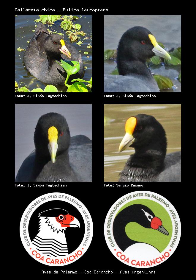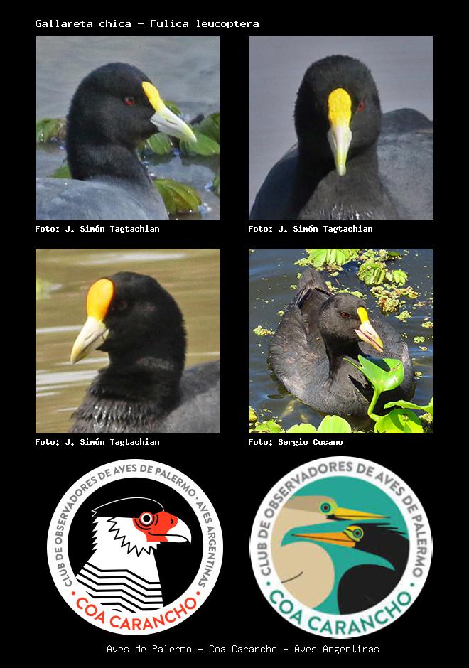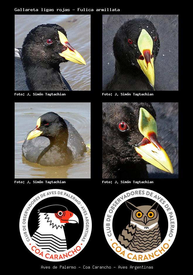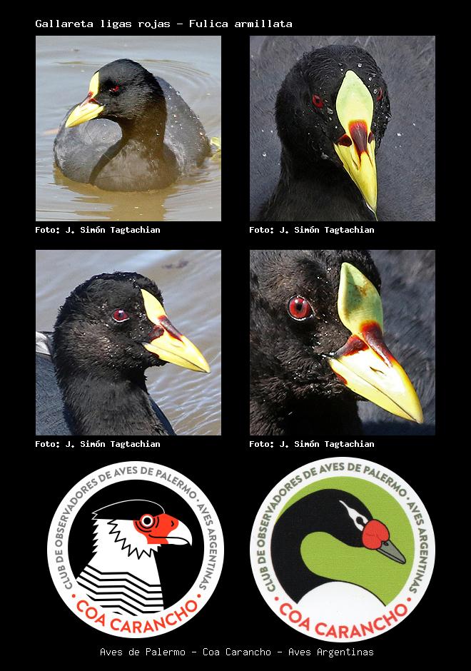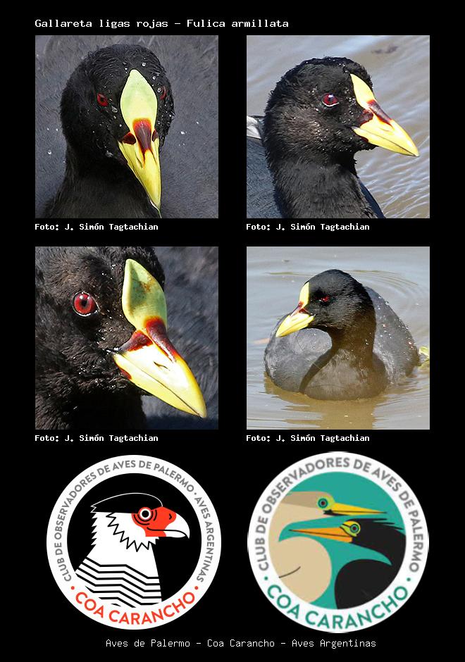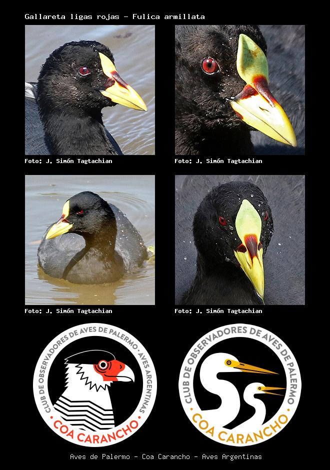 | Gallareta ligas rojas Red-gartered Coot Fulica armillata Familia: Rallidae Código: 3210 - Orden: 38 | ![]() J. Simón Tagtachian | ![]() J. Simón Tagtachian |