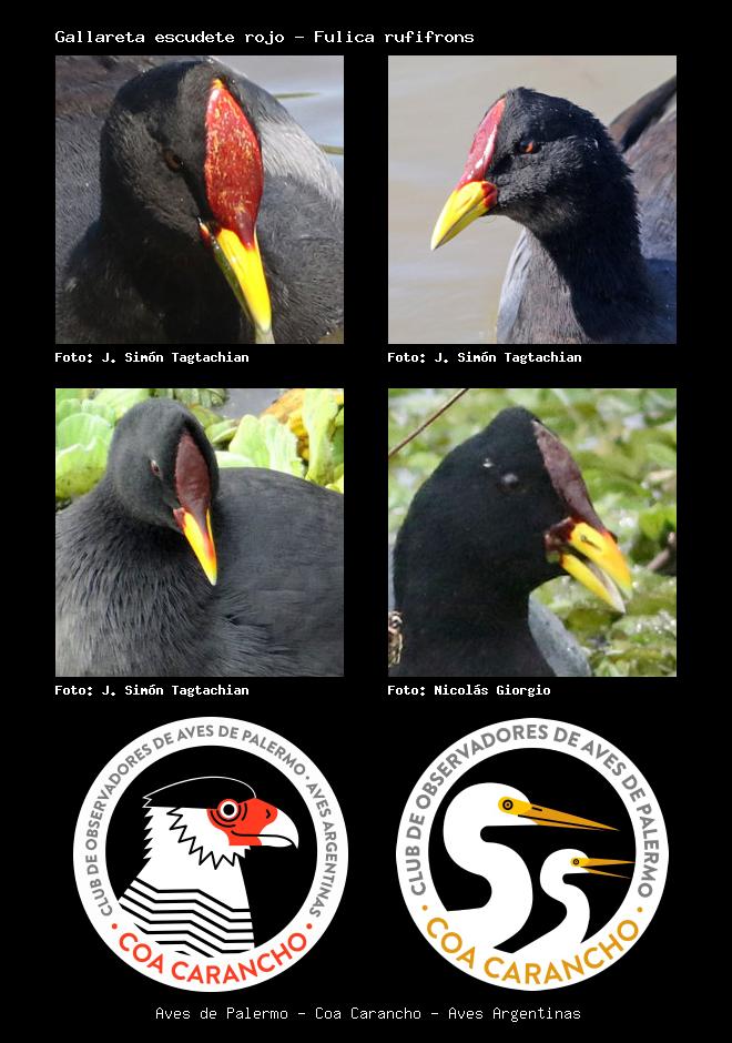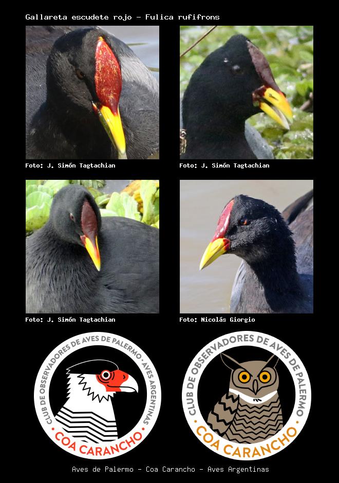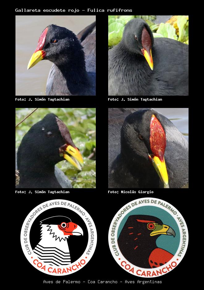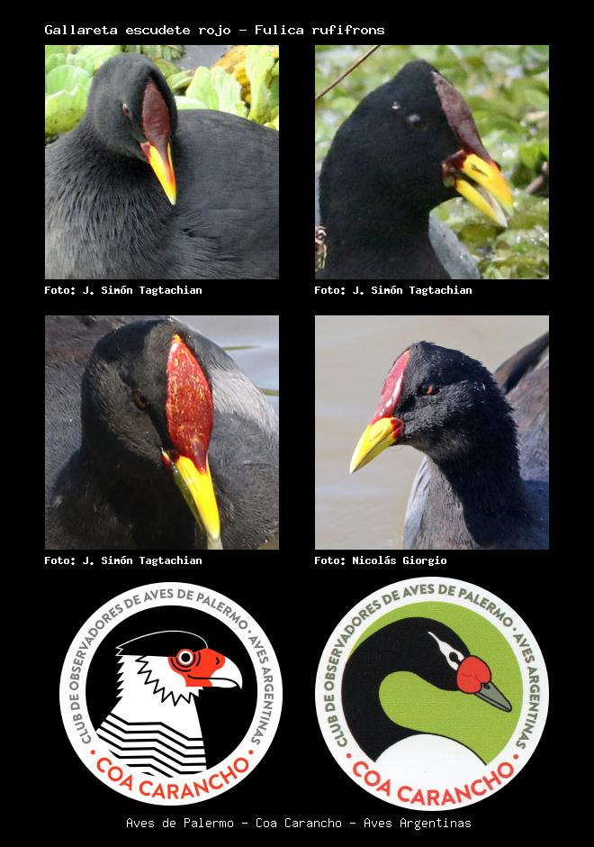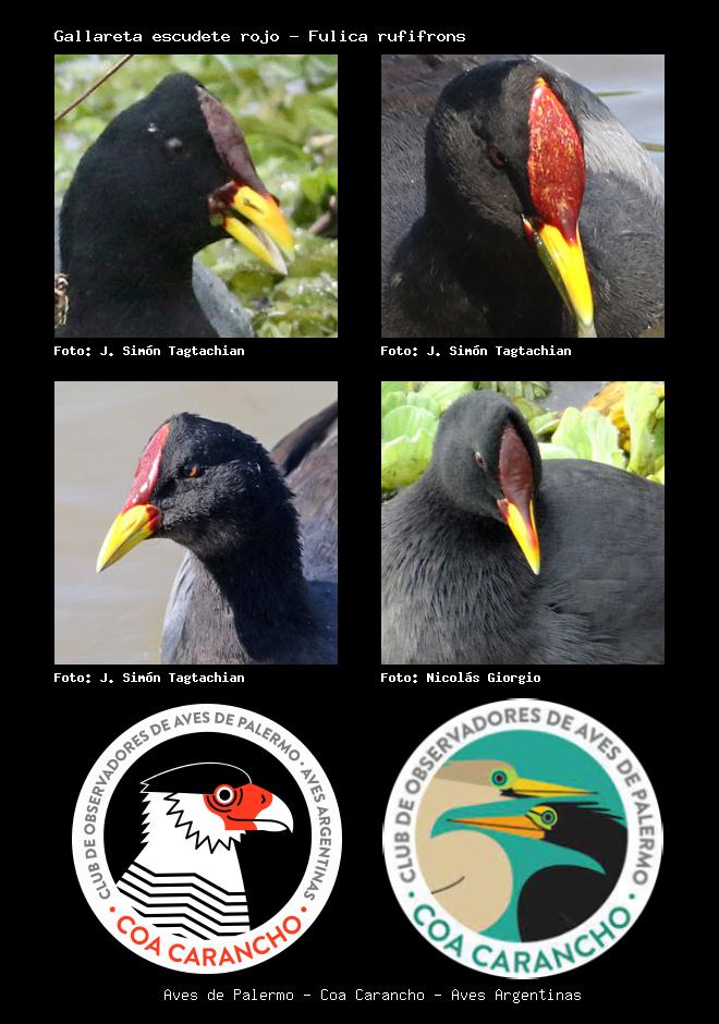 | Gallareta escudete rojo Red-fronted Coot Fulica rufifrons Familia: Rallidae Código: 3211 - Orden: 37 | ![]() J. Simón Tagtachian | ![]() J. Simón Tagtachian |