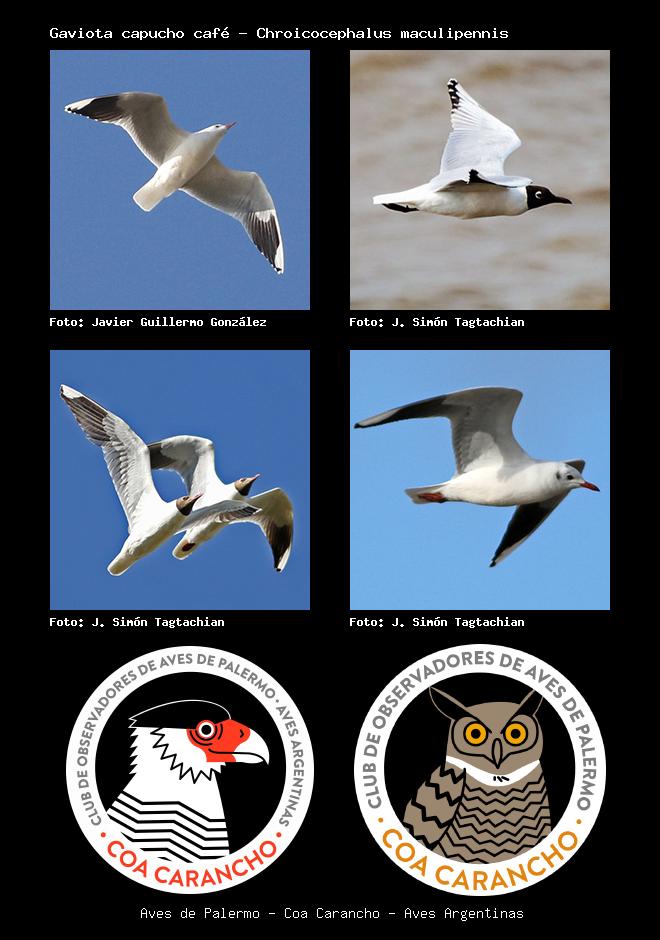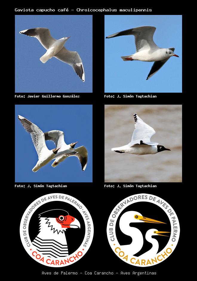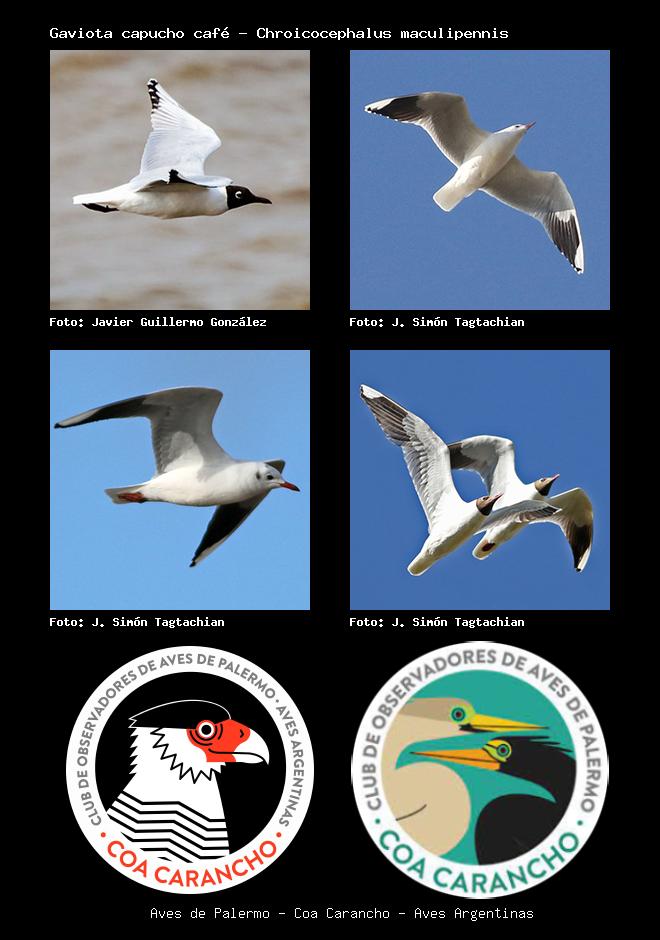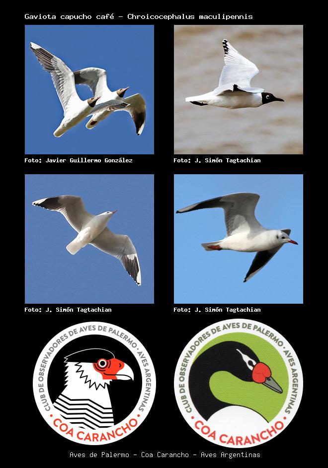 | Gaviota capucho café Brown-hooded Gull Chroicocephalus maculipennis Familia: Laridae Código: 4301 - Orden: 47 | ![]() Javier Guillermo González | ![]() J. Simón Tagtachian |
