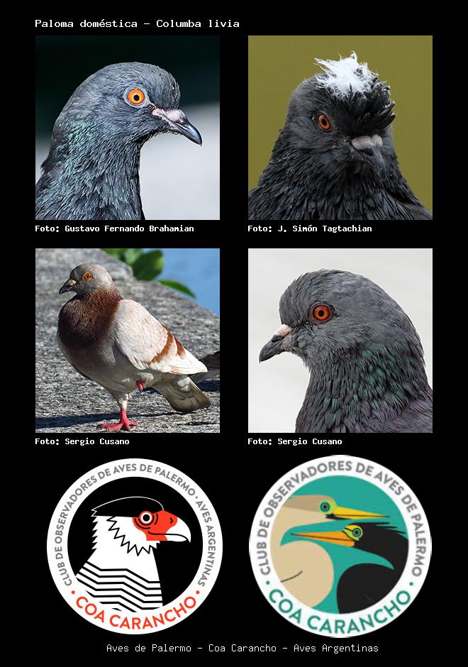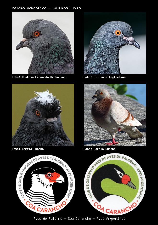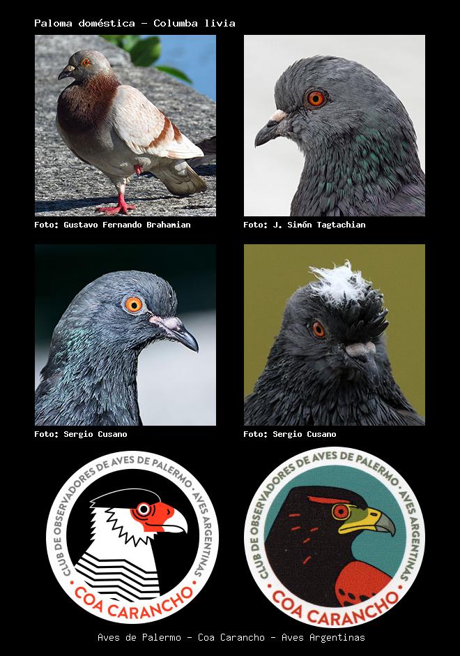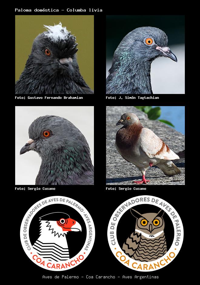 | Paloma doméstica Rock Pigeon Columba livia Familia: Columbidae Código: 4503 - Orden: 65 | ![]() Gustavo Fernando Brahamian | ![]() J. Simón Tagtachian |