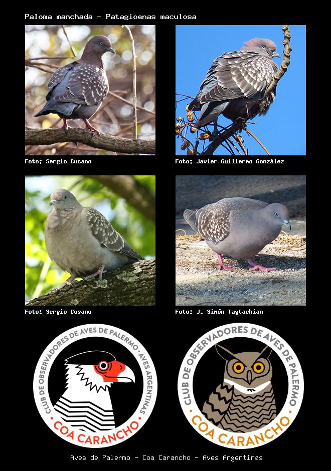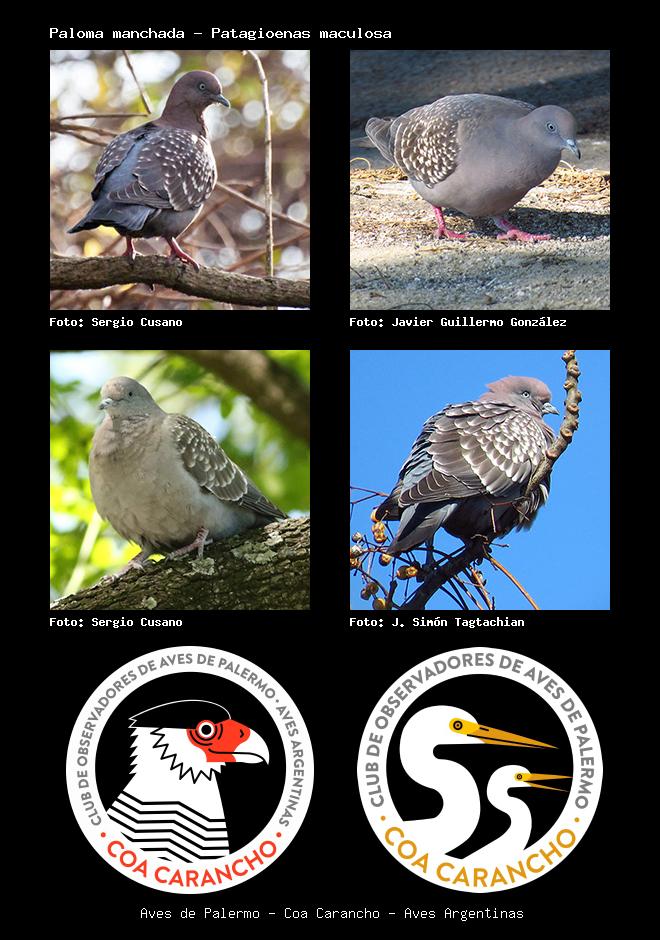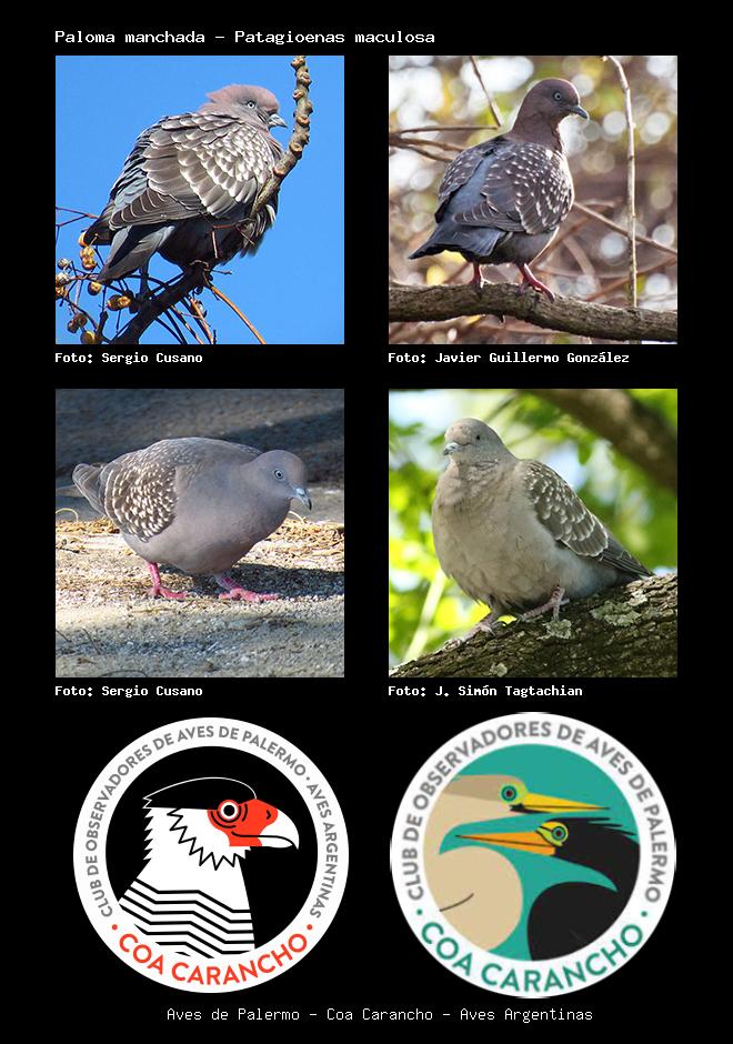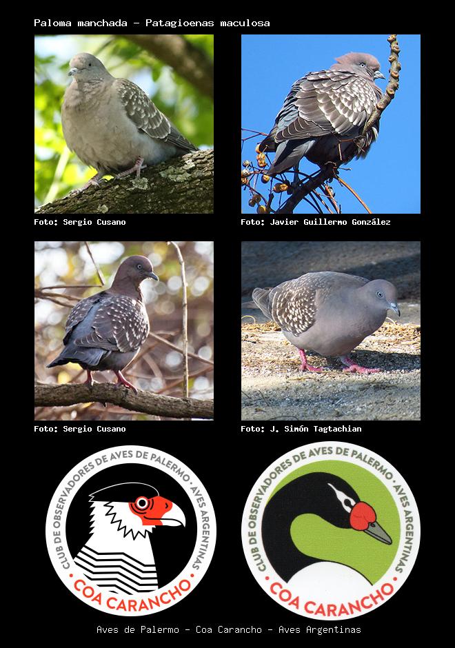 | Paloma manchada Spot-winged Pigeon Patagioenas maculosa Familia: Columbidae Código: 4505 - Orden: 66 | ![]() Sergio Cusano | ![]() Javier Guillermo González |