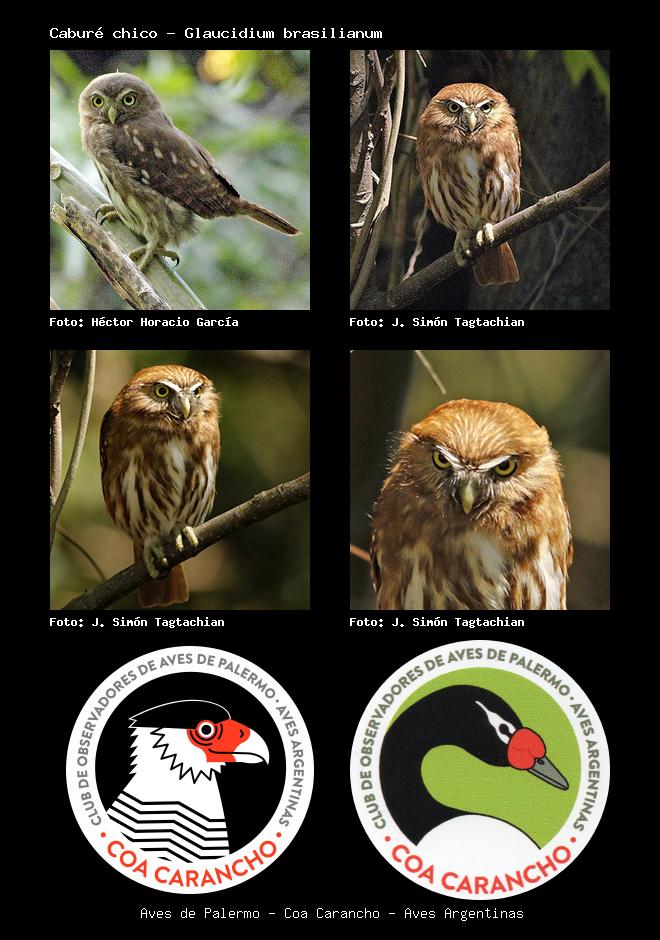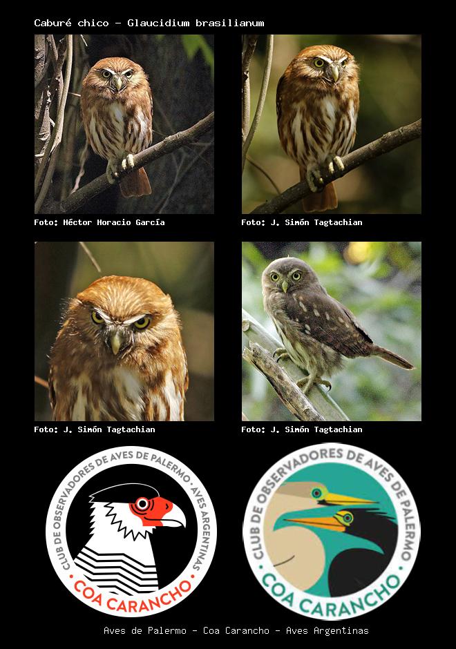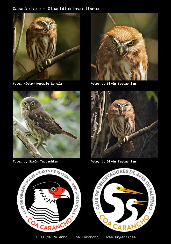 | Caburé chico Ferruginous Pygmy-Owl Glaucidium brasilianum Familia: Strigidae Código: 4802 - Orden: 8 | ![]() Héctor Horacio García | ![]() J. Simón Tagtachian |