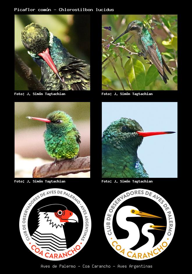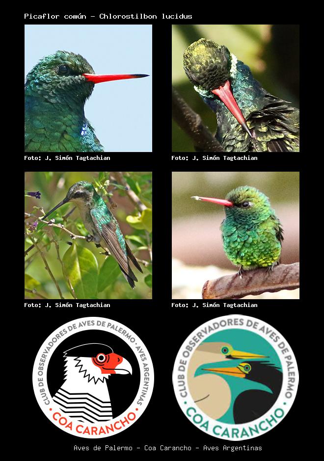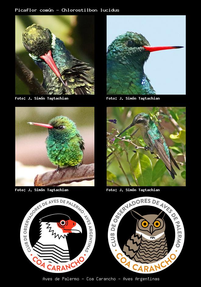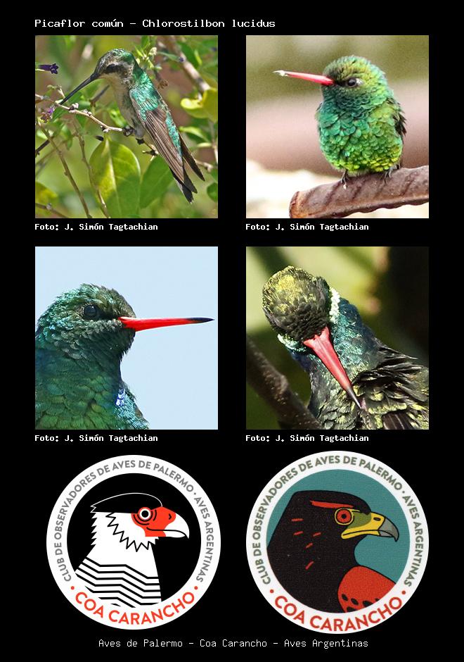 | Picaflor verde Glittering-bellied Emerald Chlorostilbon lucidus Familia: Trochilidae Código: 5201 - Orden: 74 | ![]() J. Simón Tagtachian | ![]() J. Simón Tagtachian |