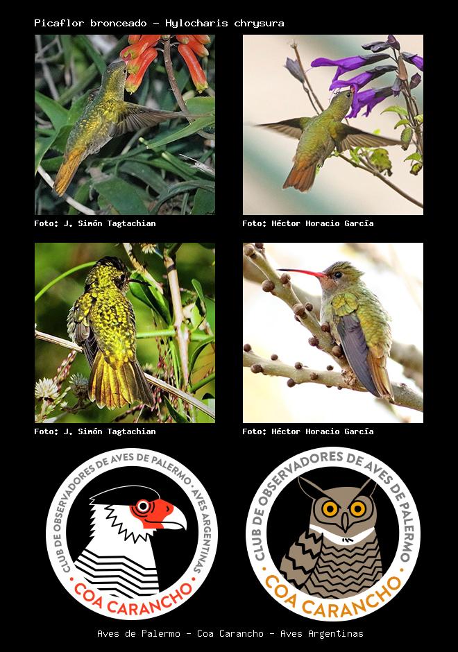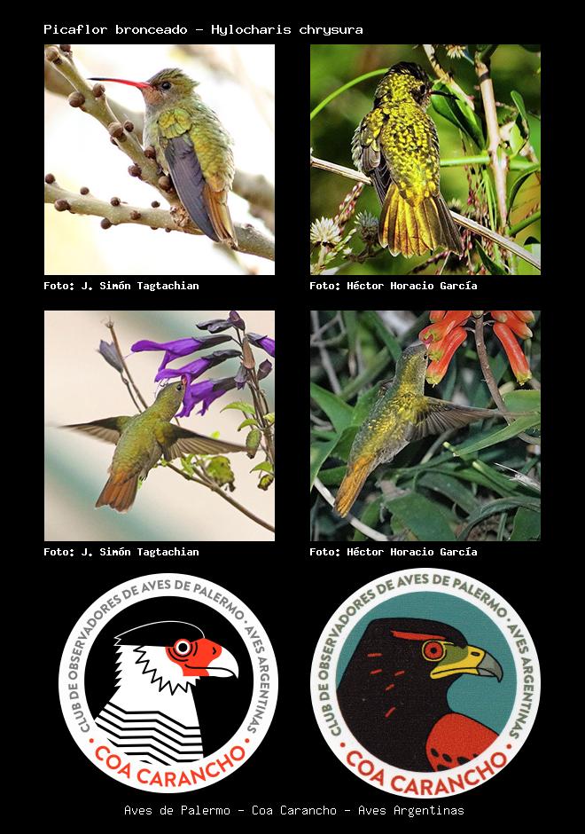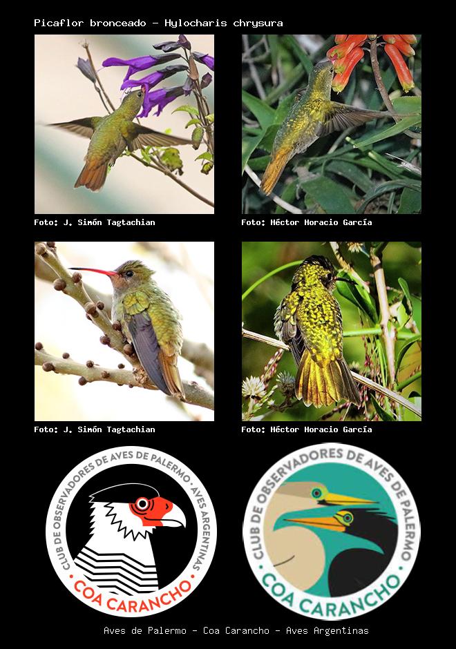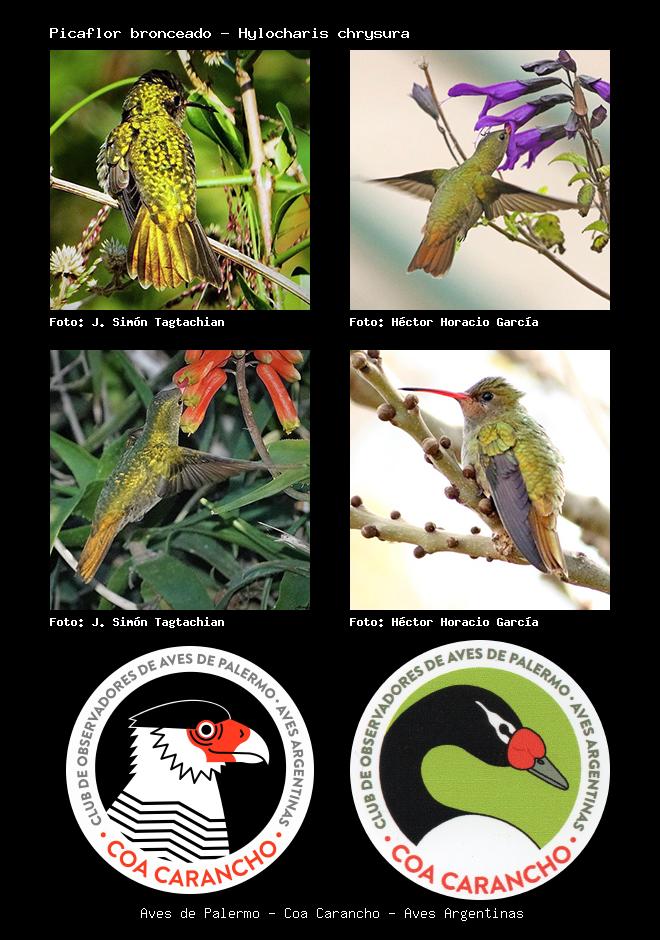 | Picaflor bronceado Gilded Hummingbird Hylocharis chrysura Familia: Trochilidae Código: 5203 - Orden: 73 | ![]() J. Simón Tagtachian | ![]() Héctor Horacio García |