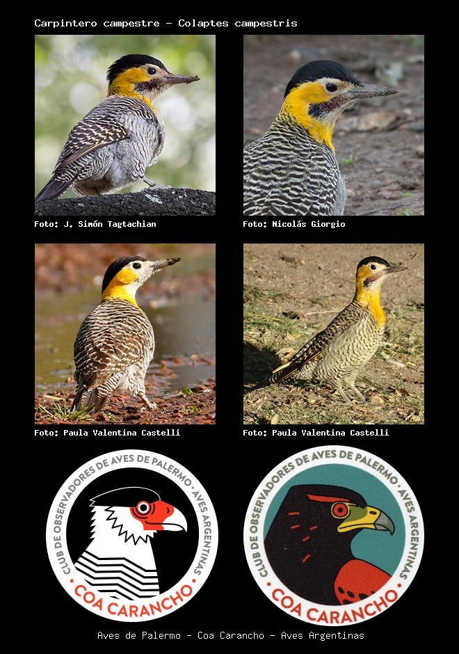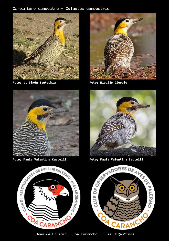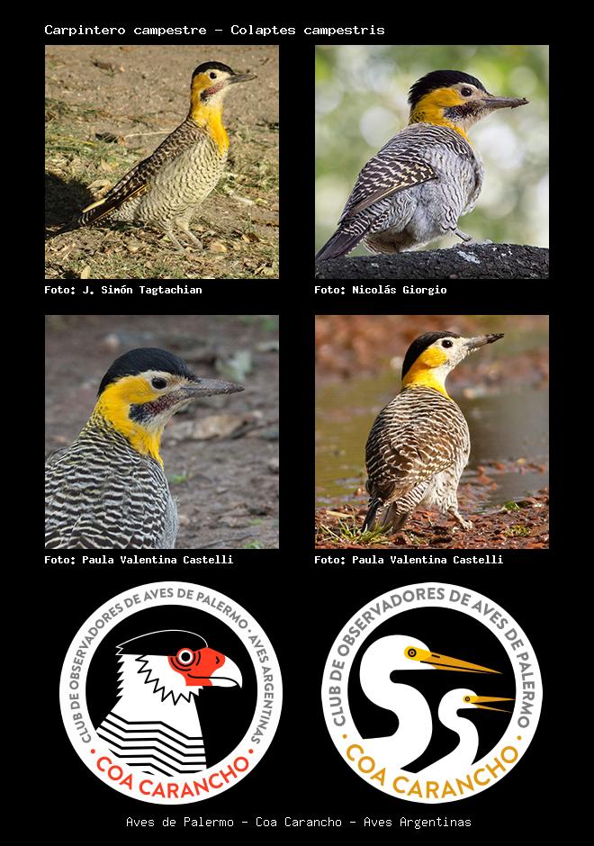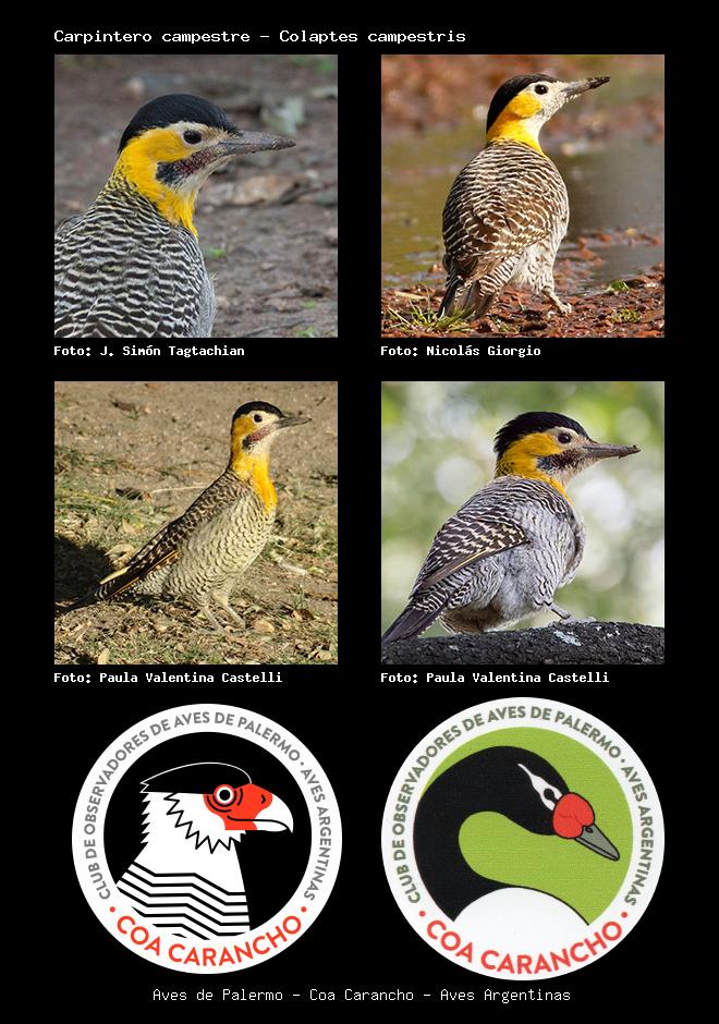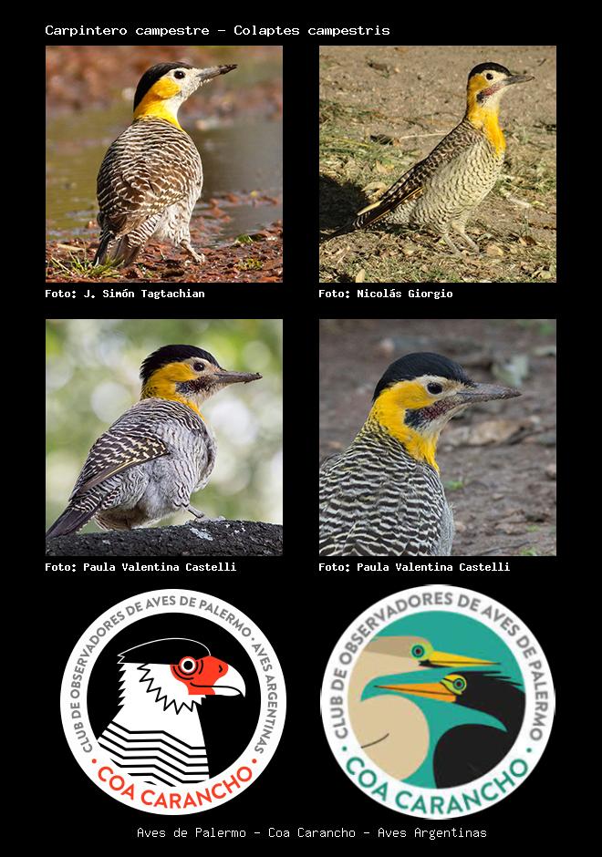 | Carpintero campestre Campo Flicker Colaptes campestris Familia: Picidae Código: 5504 - Orden: 17 | ![]() J. Simón Tagtachian | ![]() Nicolás Giorgio |