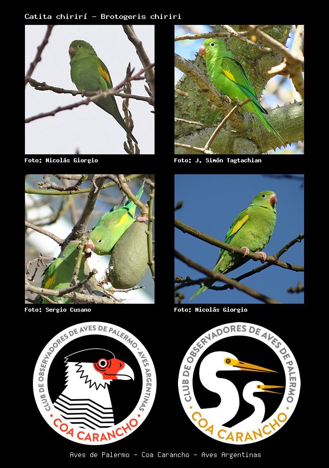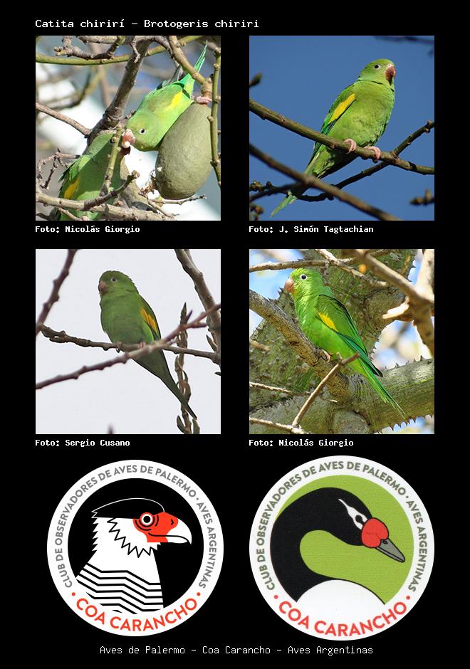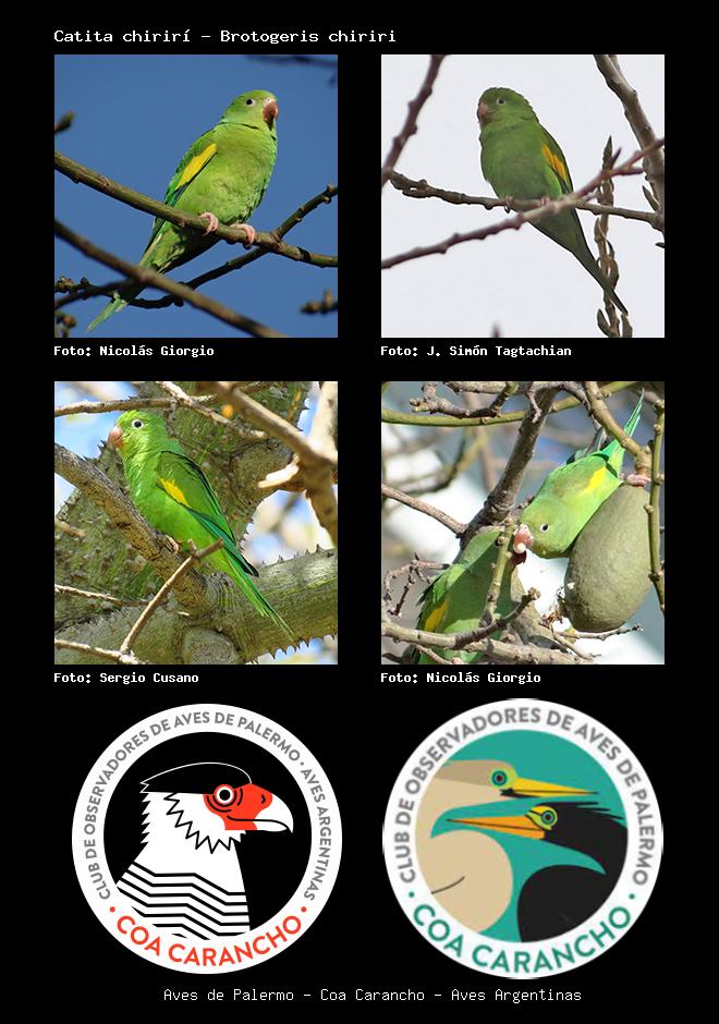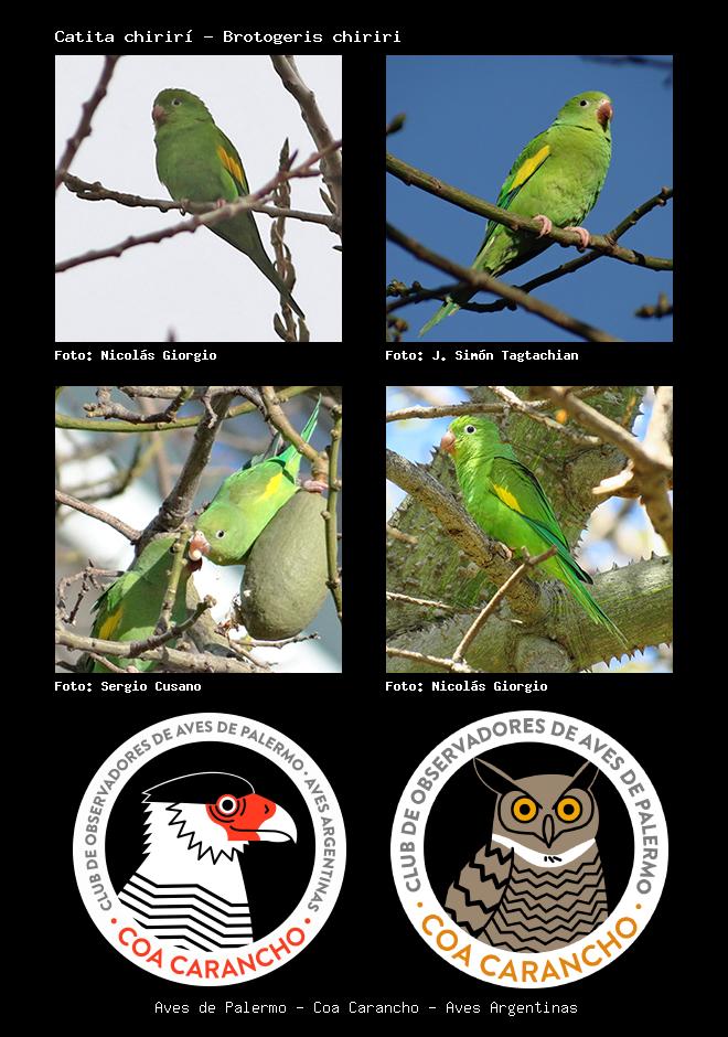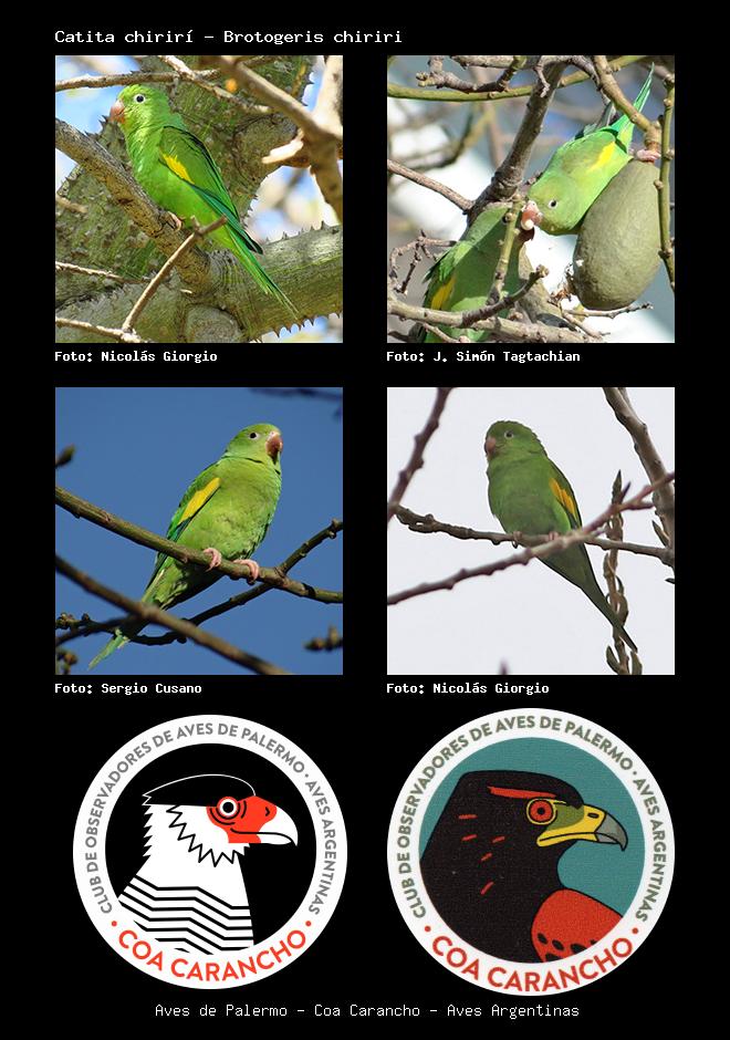 | Catita chirirí Yellow-chevroned Parakeet Brotogeris chiriri Familia: Psittacidae Código: 5805 - Orden: 19 | ![]() Nicolás Giorgio | ![]() J. Simón Tagtachian |