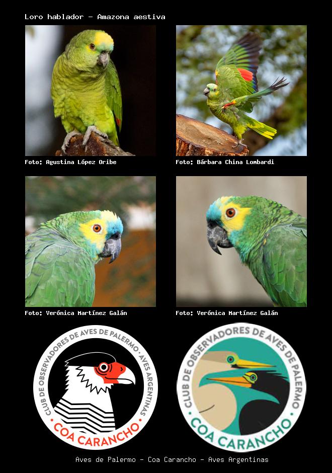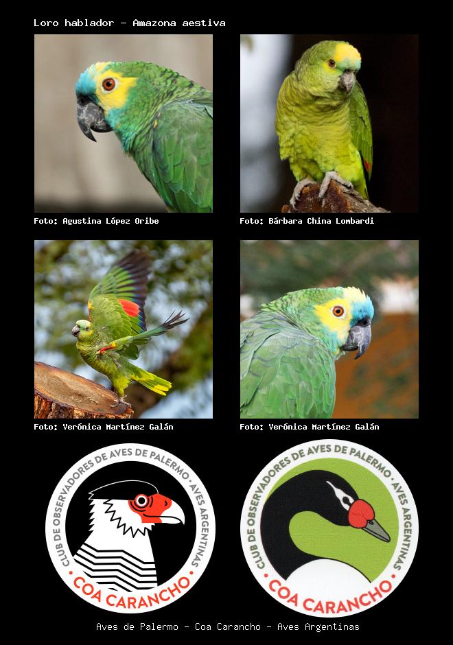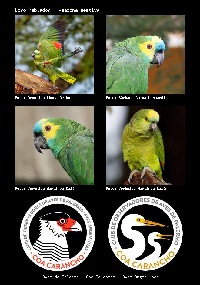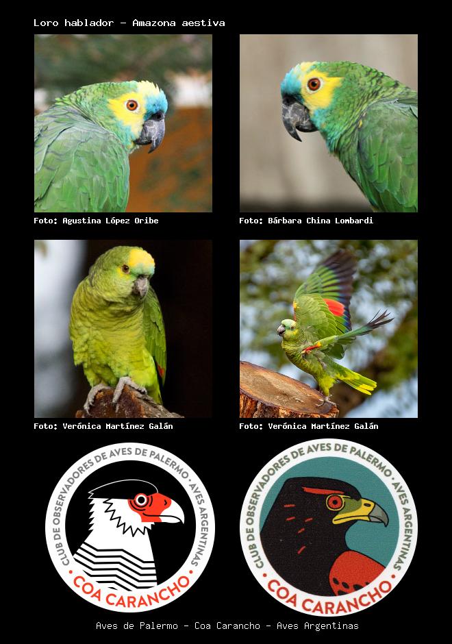 | Loro hablador Turquoise-fronted Parrot Amazona aestiva Familia: Psittacidae Código: 5807 - Orden: 58 | ![]() Agustina López Oribe | ![]() Bárbara (China) Lombardi |