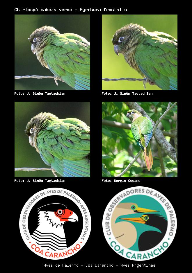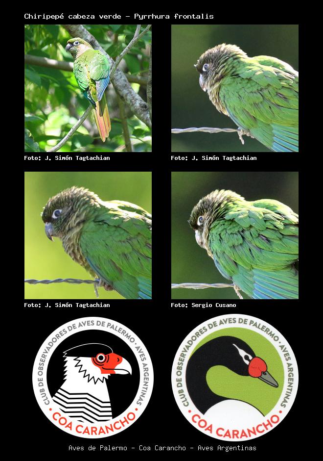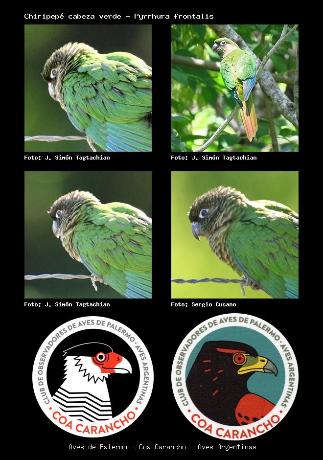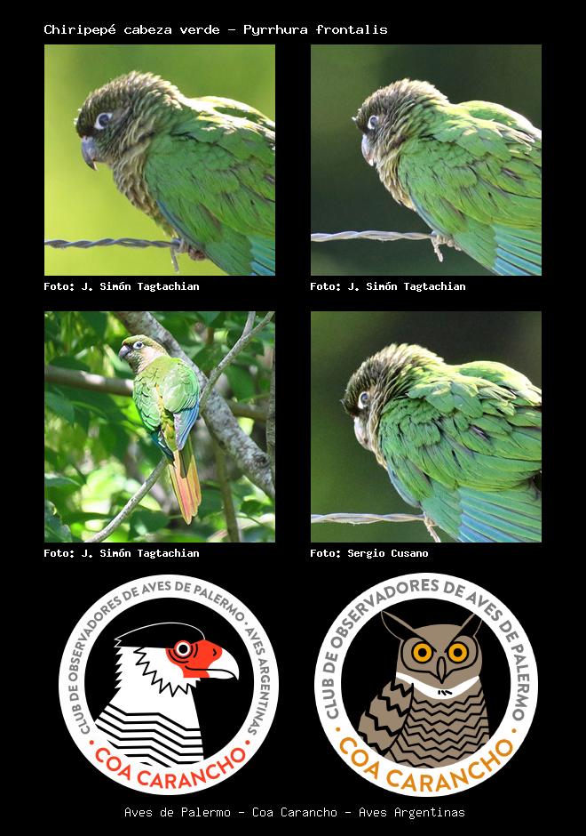 | Chiripepé cabeza verde Maroon-bellied Parakeet Pyrrhura frontalis Familia: Psittacidae Código: 5808 - Orden: 25 | ![]() J. Simón Tagtachian | ![]() J. Simón Tagtachian |