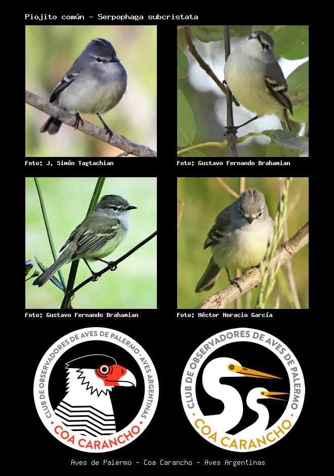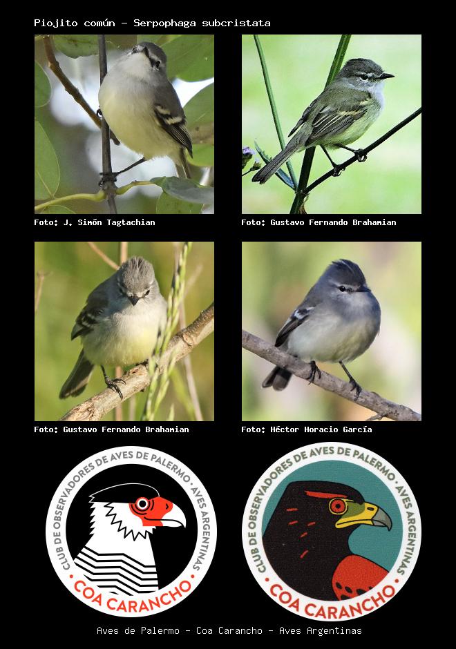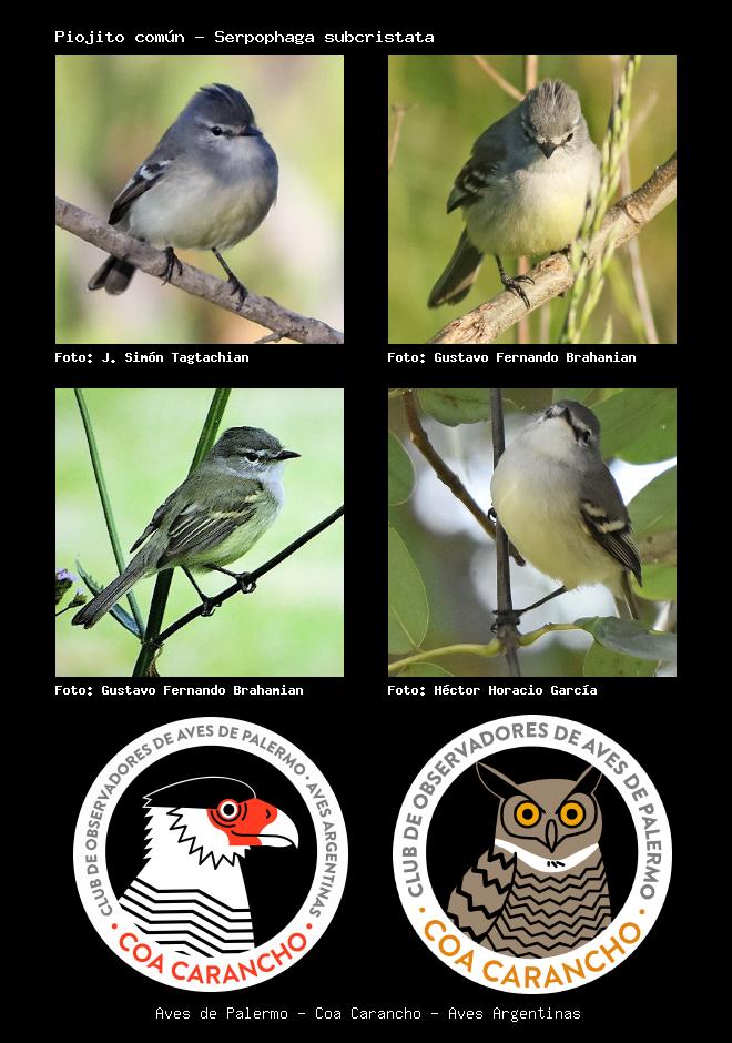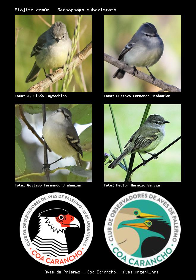 | Piojito tiquitiqui White-crested Tyrannulet Serpophaga subcristata Familia: Tyrannidae Código: 6408 - Orden: 75 | ![]() J. Simón Tagtachian | ![]() Gustavo Fernando Brahamian |