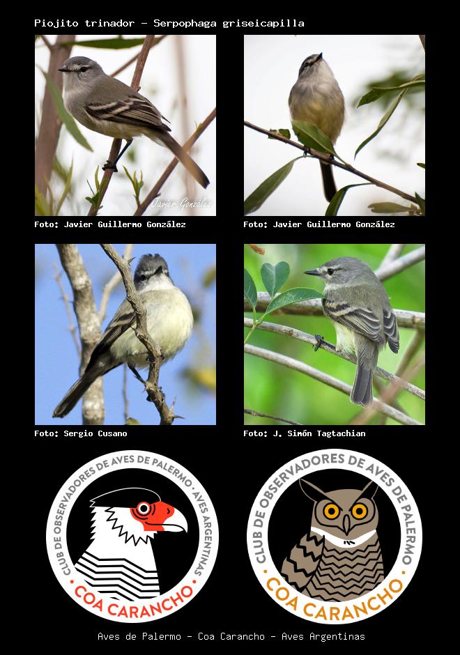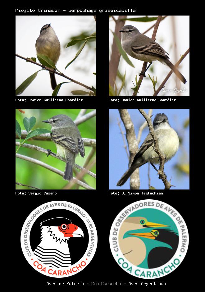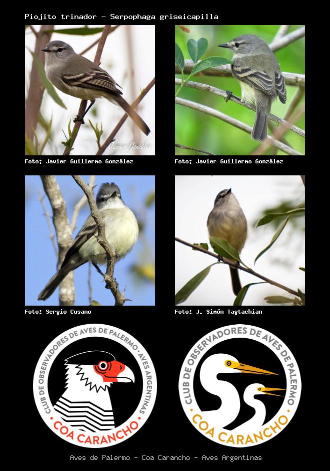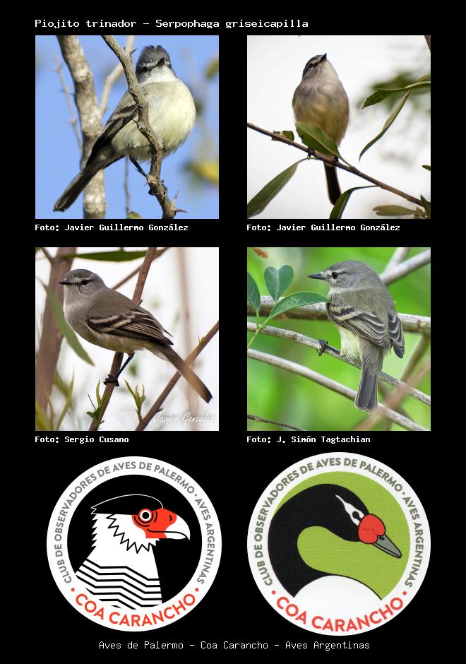 | Piojito trinador Straneck's Tyrannulet Serpophaga griseicapilla Familia: Tyrannidae Código: 6409 - Orden: 76 | ![]() Javier Guillermo González | ![]() Javier Guillermo González |