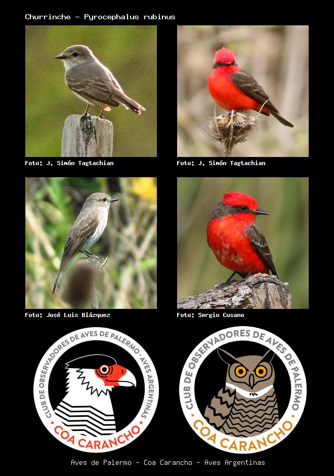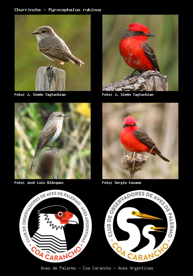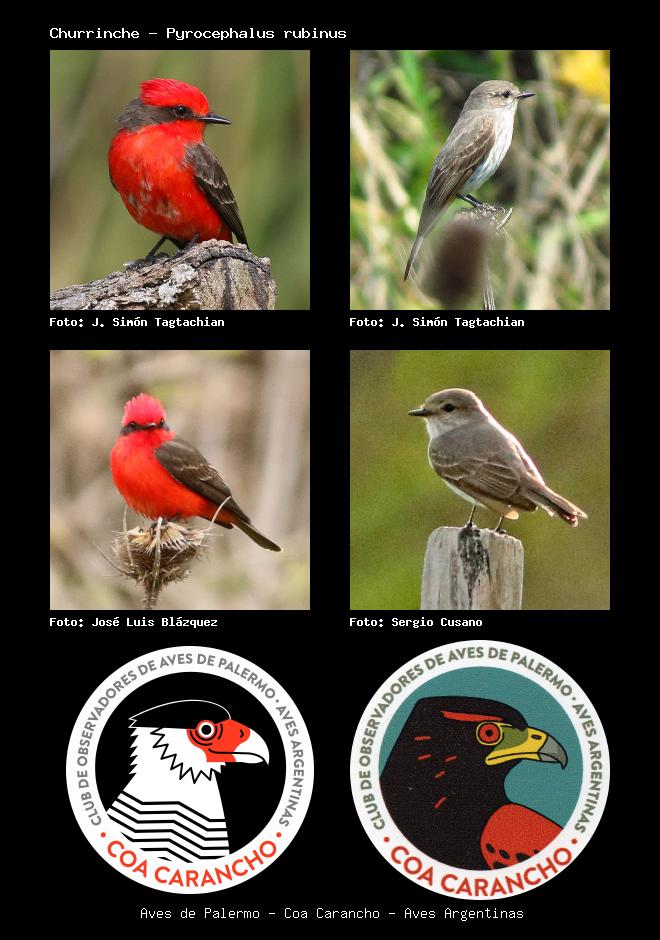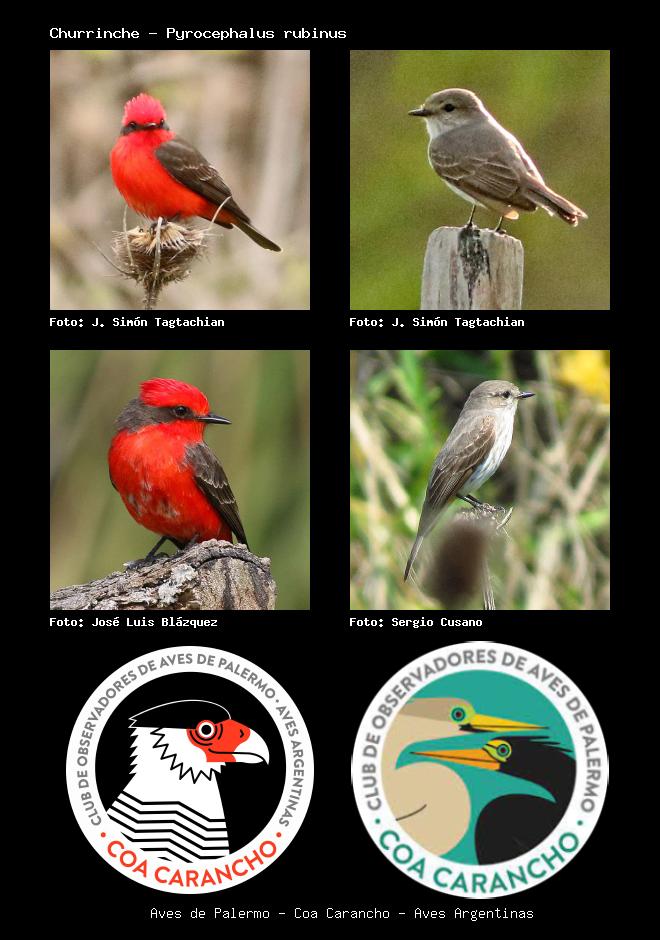 | Churrinche Vermilion Flycatcher Pyrocephalus rubinus Familia: Tyrannidae Código: 6417 - Orden: 27 | ![]() J. Simón Tagtachian | ![]() J. Simón Tagtachian |