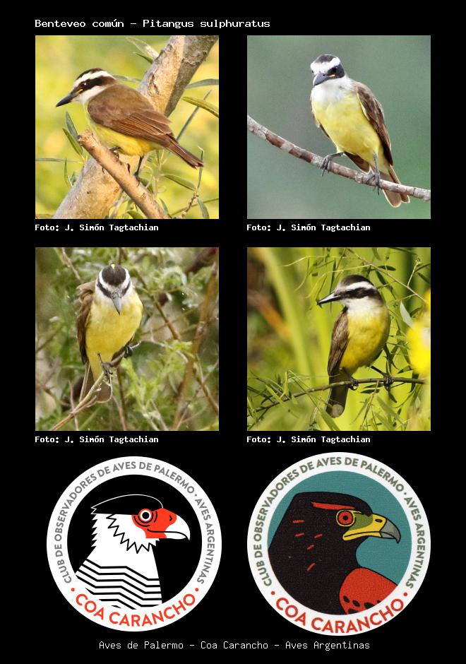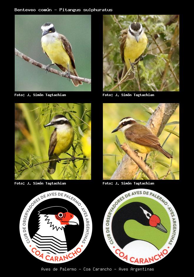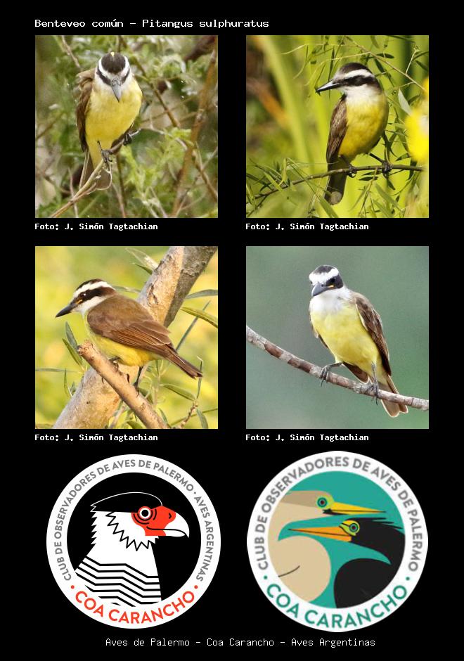 | Benteveo Great Kiskadee Pitangus sulphuratus Familia: Tyrannidae Código: 6429 - Orden: 3 | ![]() J. Simón Tagtachian | ![]() J. Simón Tagtachian |
