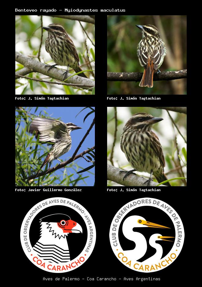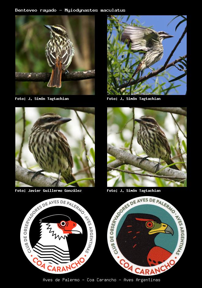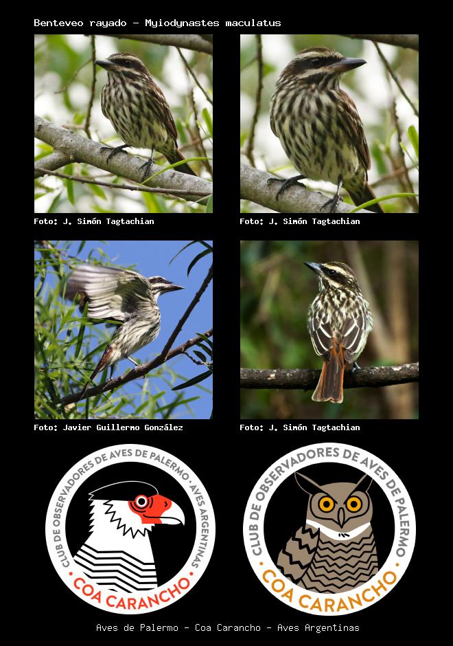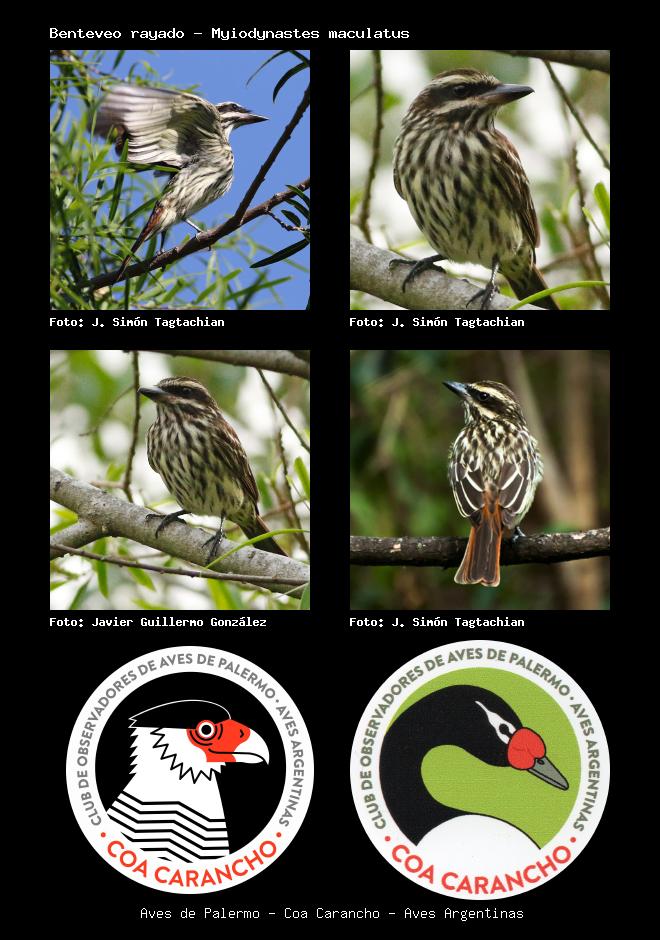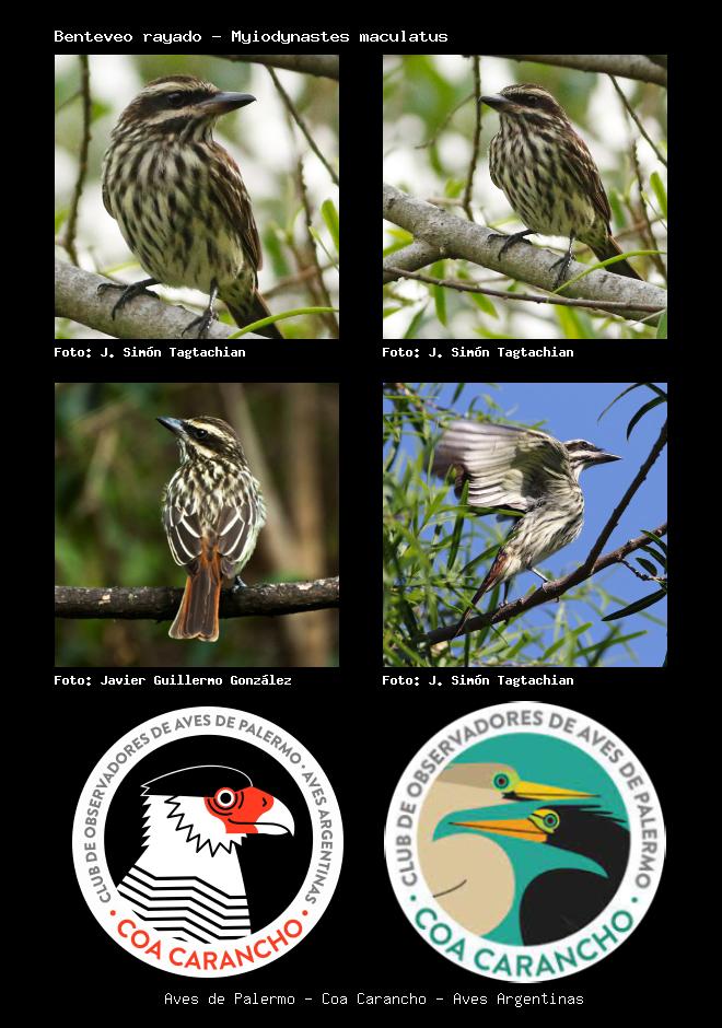 | Benteveo rayado Streaked Flycatcher Myiodynastes maculatus Familia: Tyrannidae Código: 6430 - Orden: 4 | ![]() J. Simón Tagtachian | ![]() J. Simón Tagtachian |