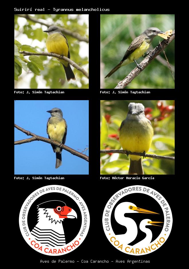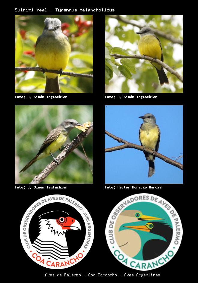 | Suirirí real Tropical Kingbird Tyrannus melancholicus Familia: Tyrannidae Código: 6434 - Orden: 81 | ![]() J. Simón Tagtachian | ![]() J. Simón Tagtachian |