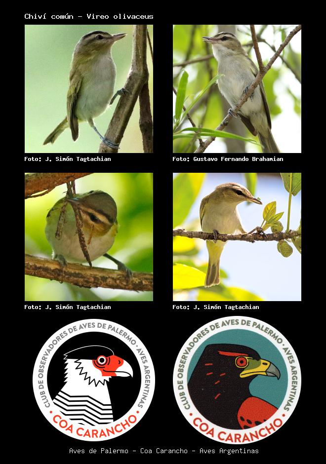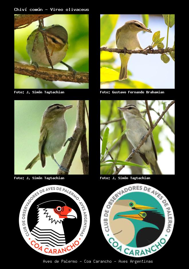| Chiví chiví Red-eyed Vireo Vireo olivaceus Familia: Vireonidae Código: 6902 - Orden: 26 | ![]() J. Simón Tagtachian | ![]() Gustavo Fernando Brahamian |