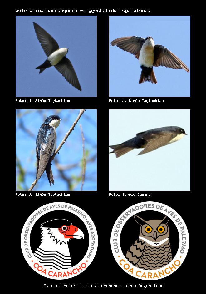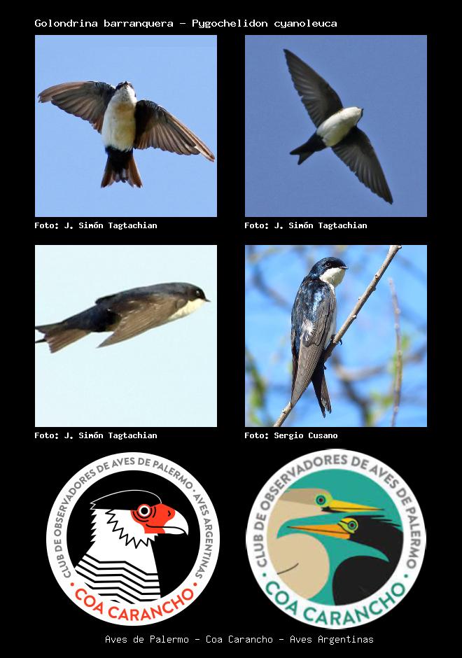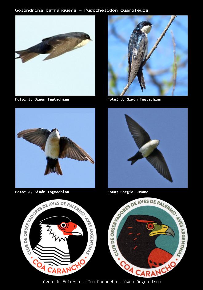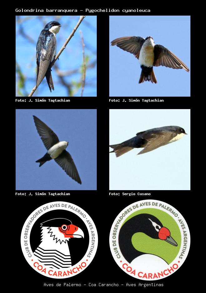 | Golondrina barranquera Blue-and-white Swallow Pygochelidon cyanoleuca Familia: Hirundinidae Código: 7101 - Orden: 49 | ![]() J. Simón Tagtachian | ![]() J. Simón Tagtachian |