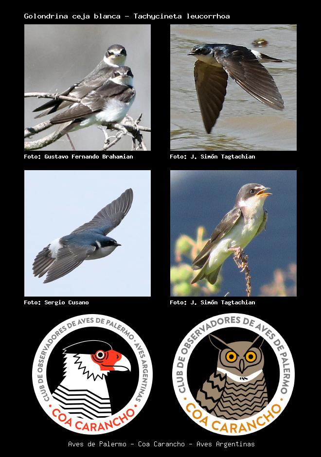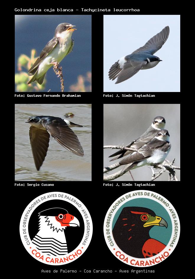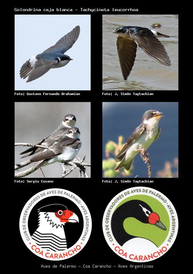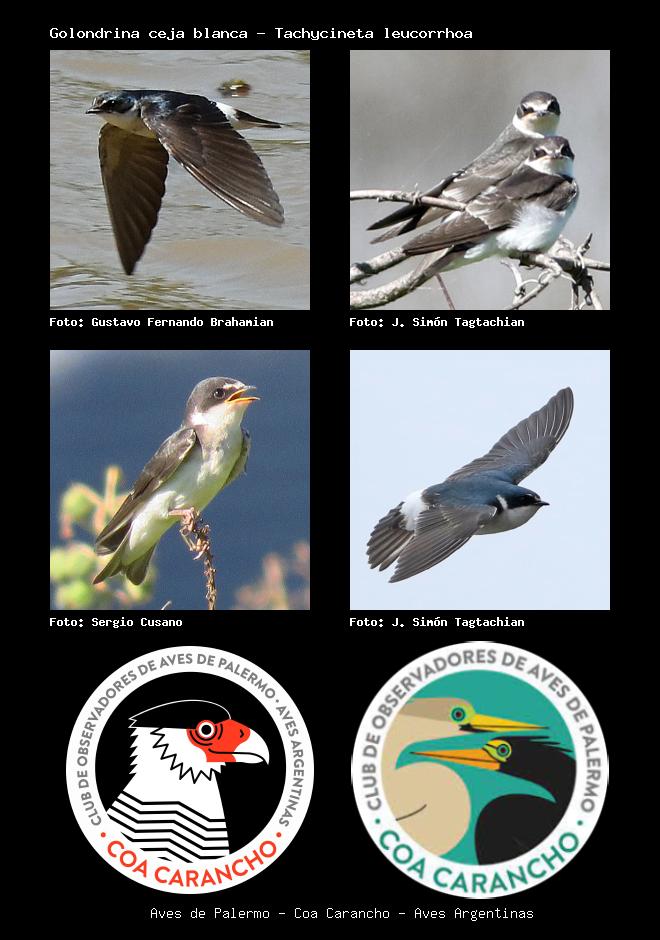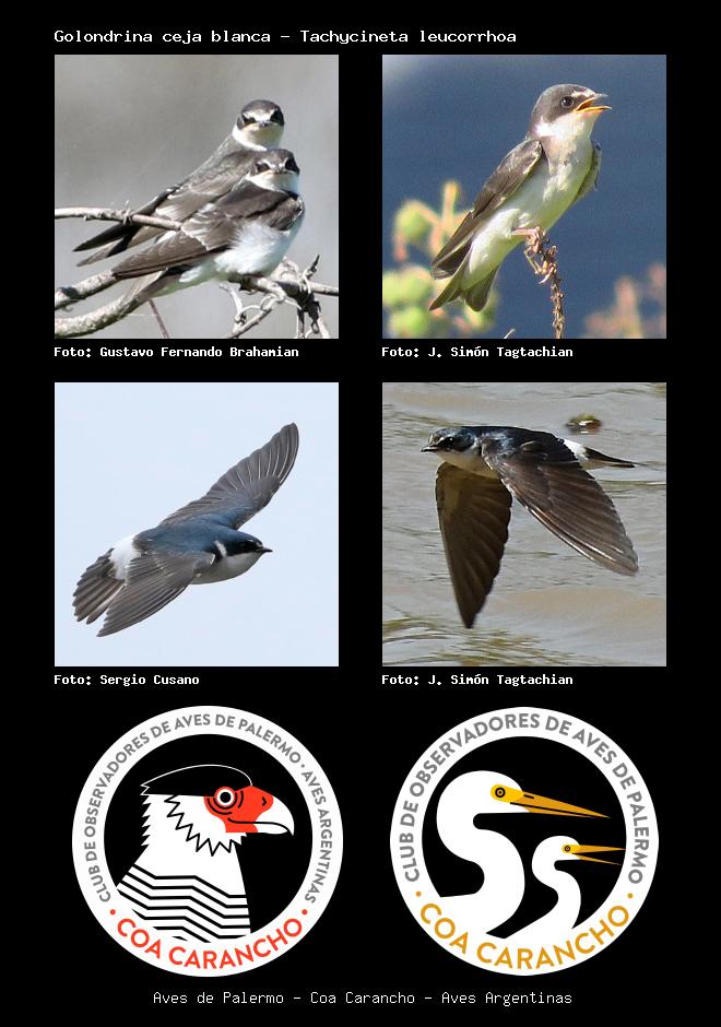 | Golondrina ceja blanca White-rumped Swallow Tachycineta leucorrhoa Familia: Hirundinidae Código: 7106 - Orden: 50 | ![]() Gustavo Fernando Brahamian | ![]() J. Simón Tagtachian |