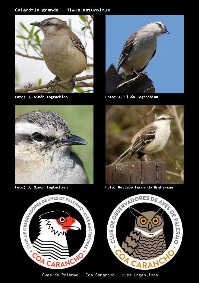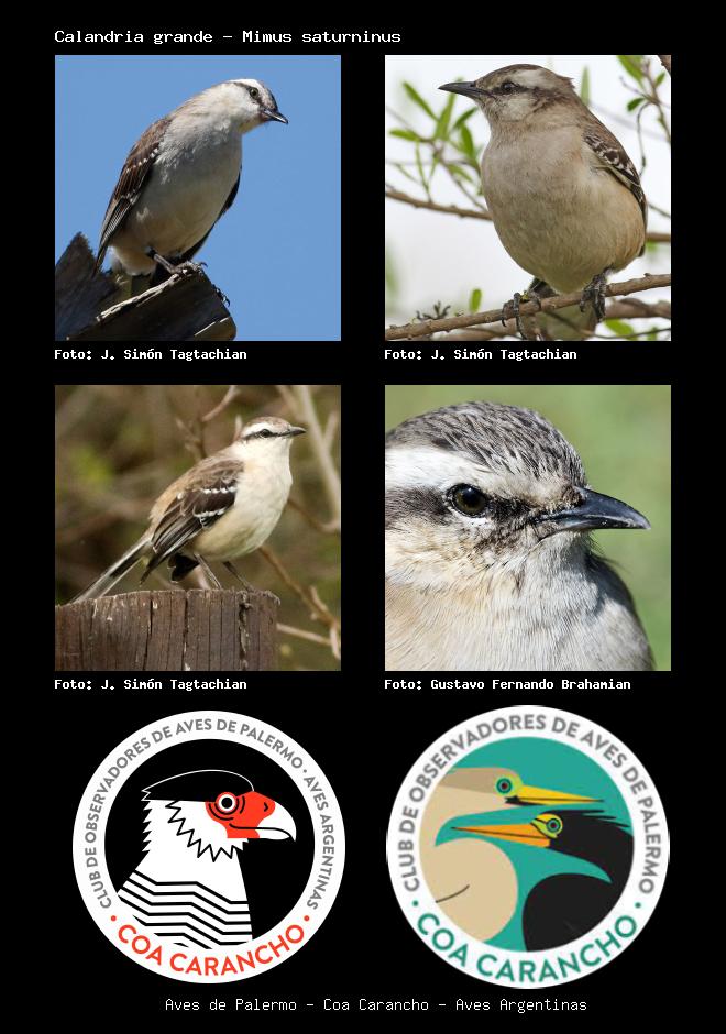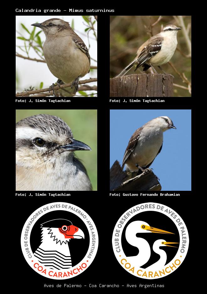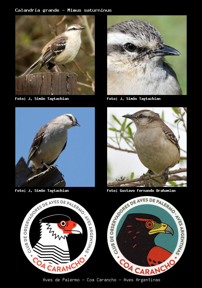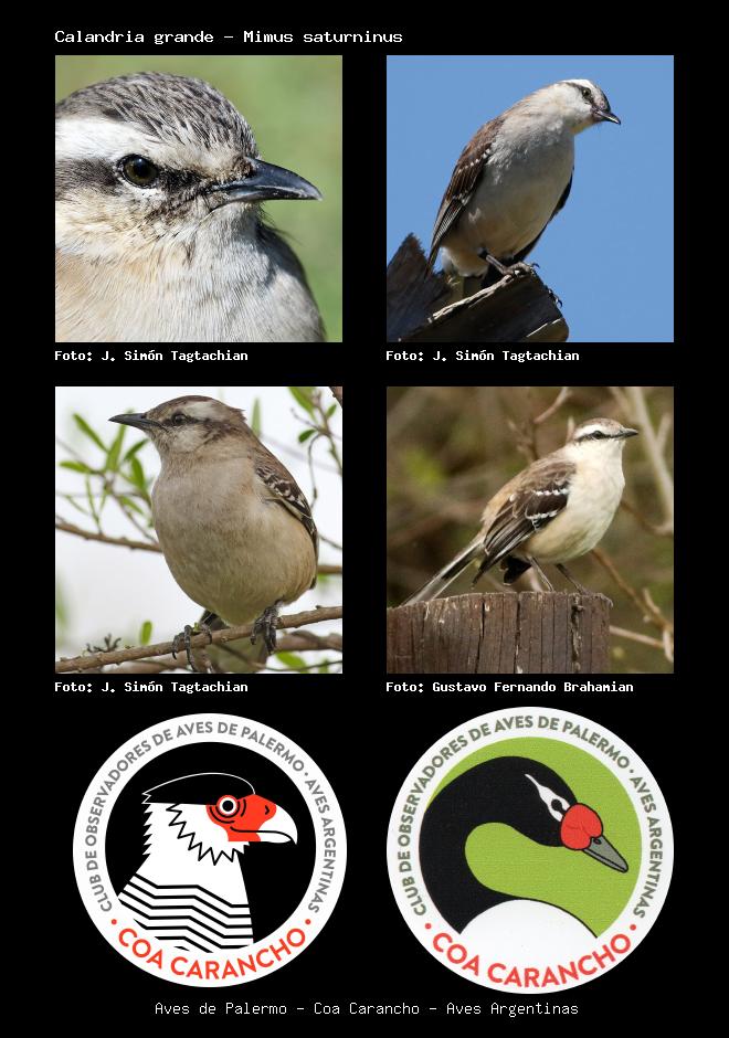 | Calandria grande Chalk-browed Mockingbird Mimus saturninus Familia: Mimidae Código: 7601 - Orden: 10 | ![]() J. Simón Tagtachian | ![]() J. Simón Tagtachian |