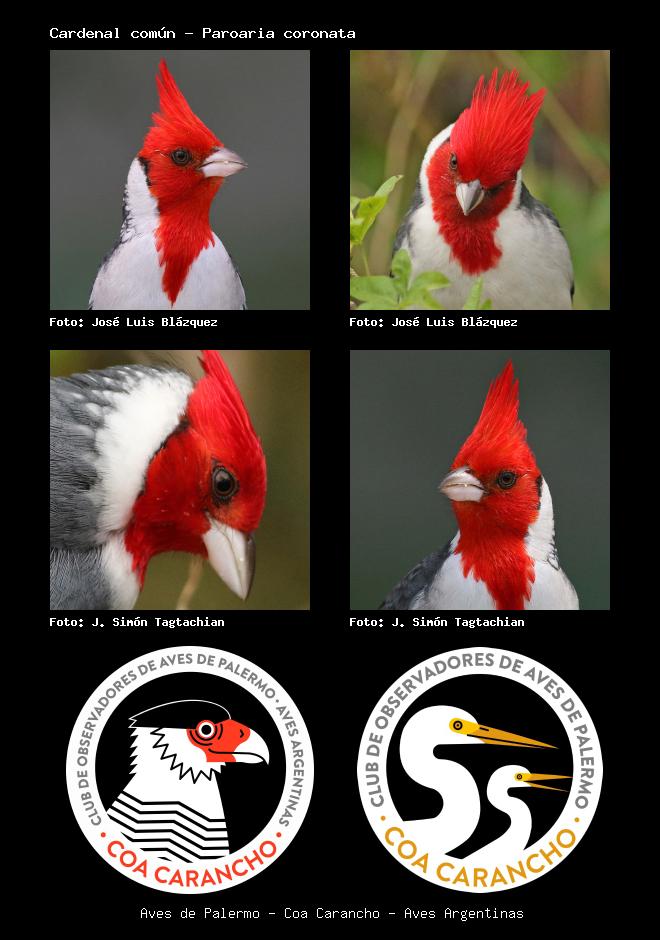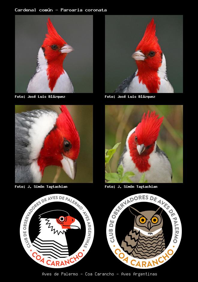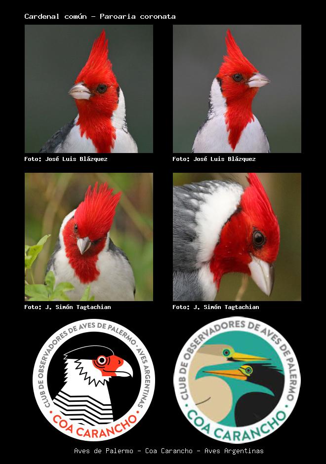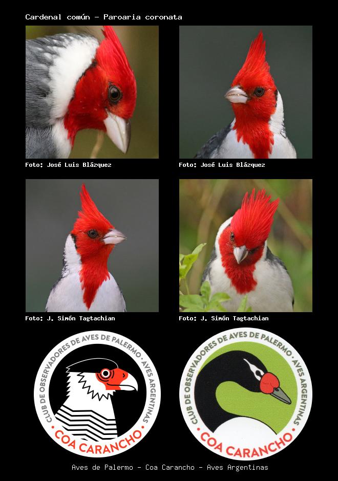 | Cardenal copete rojo Red-crested Cardinal Paroaria coronata Familia: Thraupidae Código: 7901 - Orden: 14 | ![]() José Luis Blázquez | ![]() José Luis Blázquez |