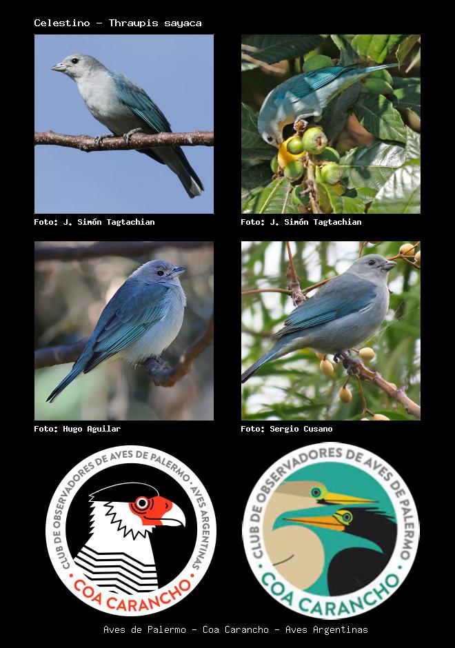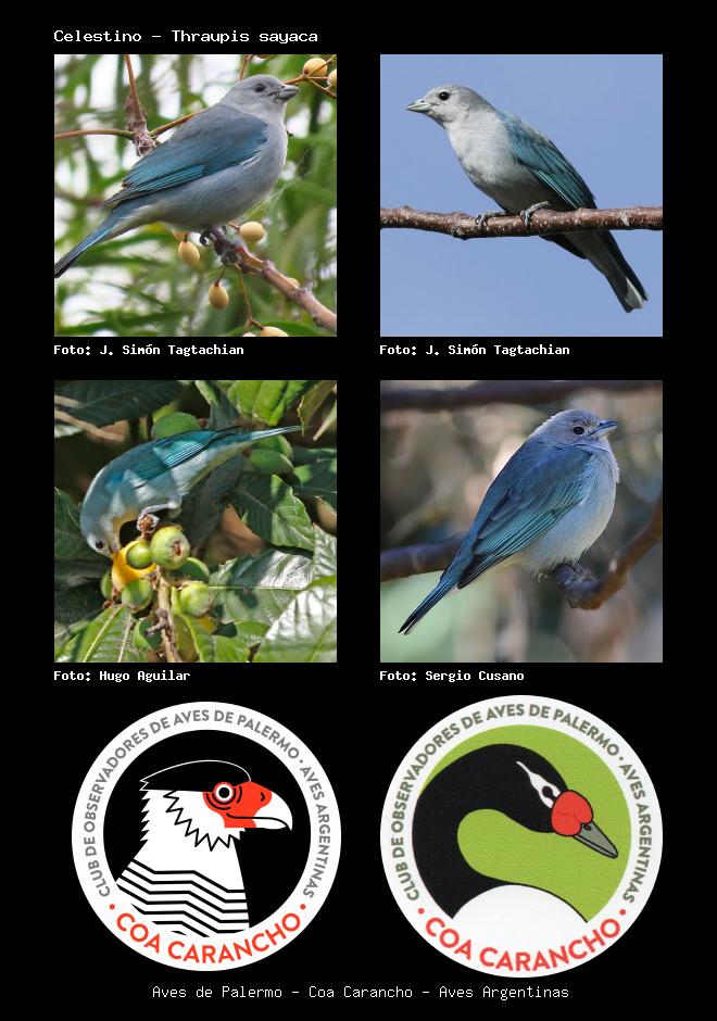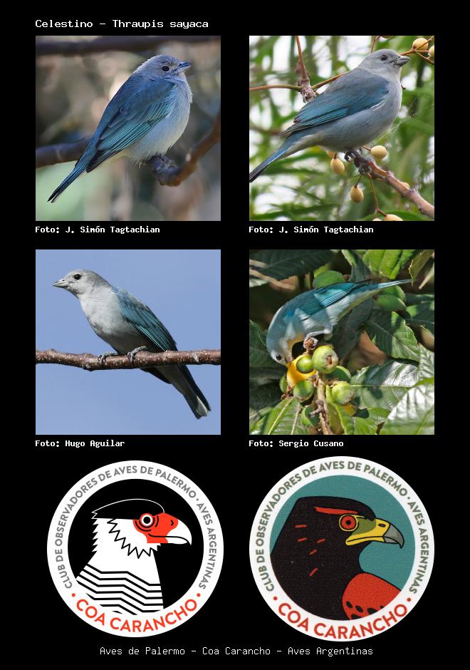 | Celestino Sayaca Tanager Thraupis sayaca Familia: Thraupidae Código: 7907 - Orden: 20 | ![]() J. Simón Tagtachian | ![]() J. Simón Tagtachian |