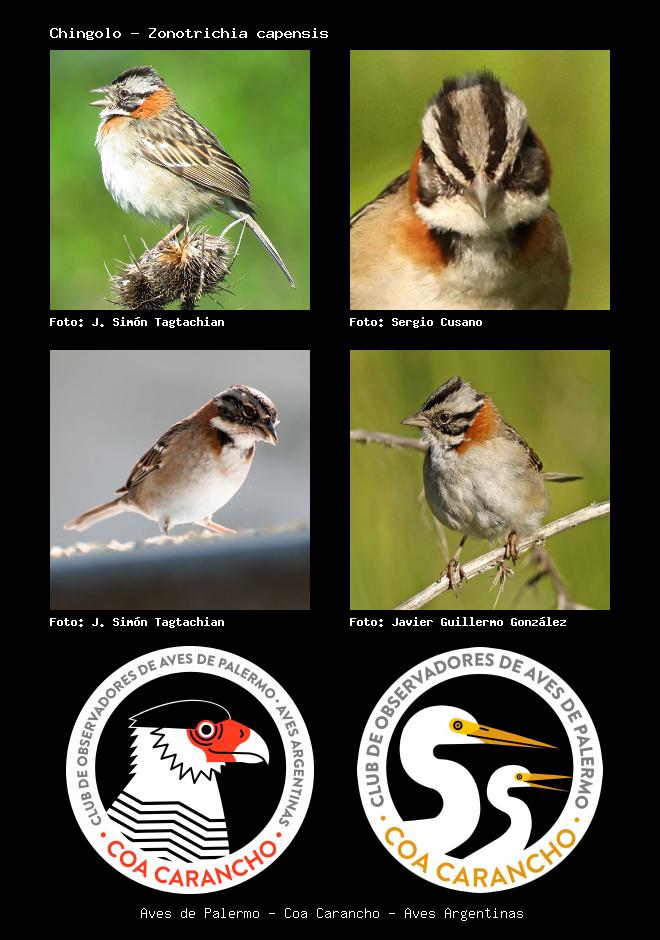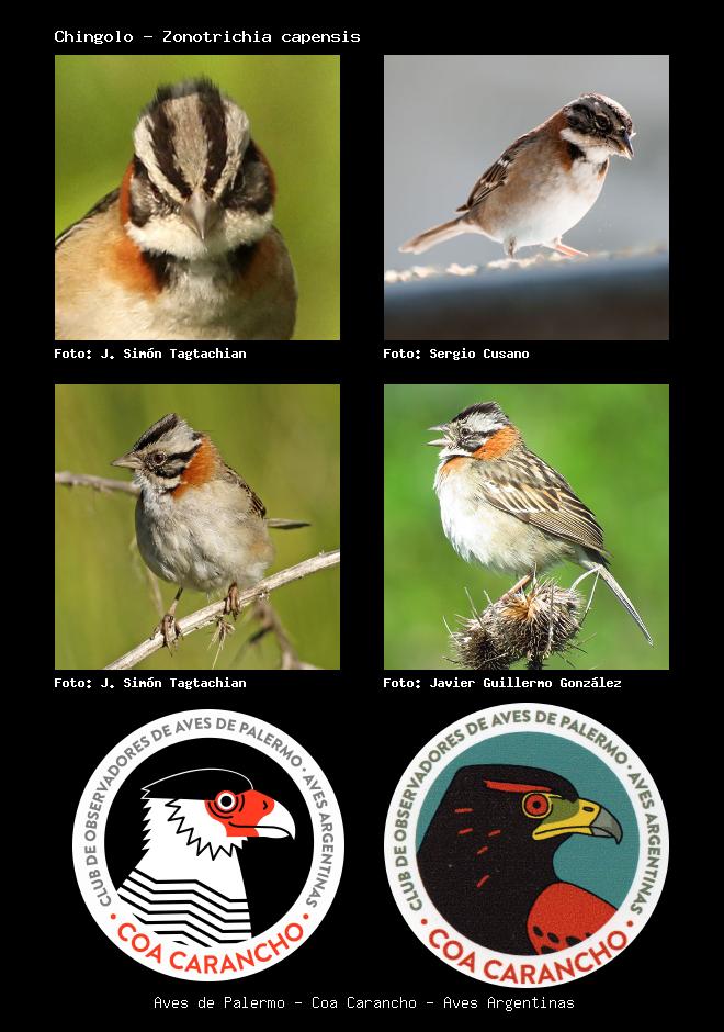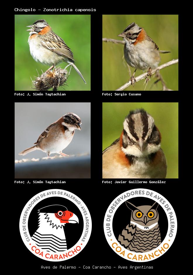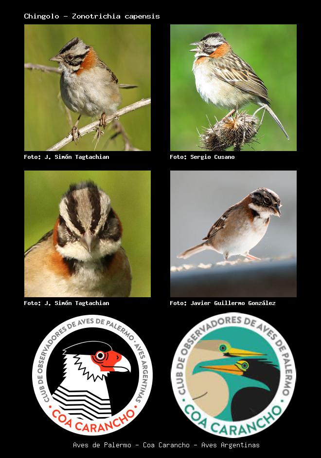| Chingolo Rufous-collared Sparrow Zonotrichia capensis Familia: Emberizidae Código: 8101 - Orden: 24 | ![]() J. Simón Tagtachian | ![]() Sergio Cusano |