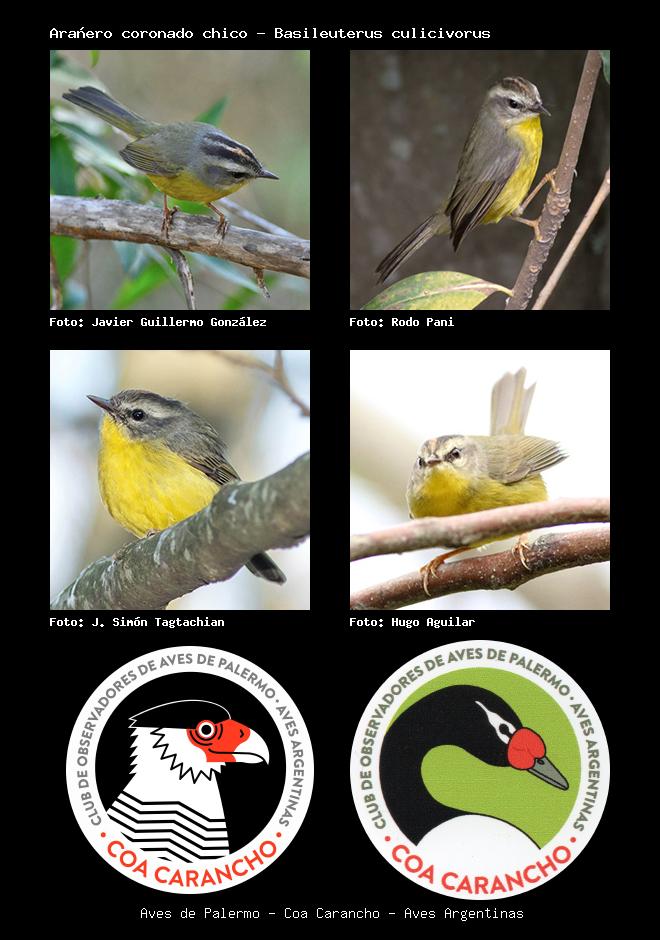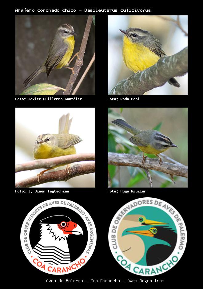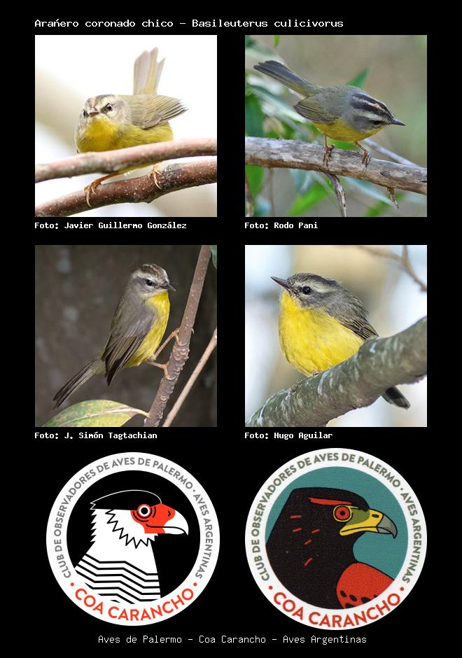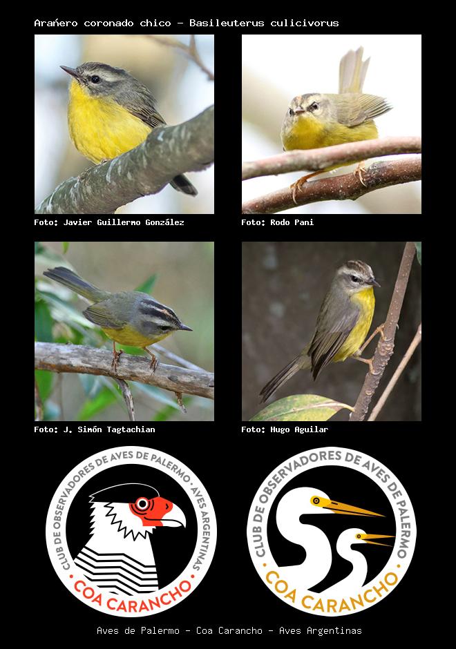 | Arañero coronado chico Golden-crowned Warbler Basileuterus culicivorus Familia: Parulidae Código: 8503 - Orden: 2 | ![]() Javier Guillermo González | ![]() Rodo Pani |