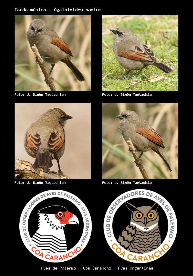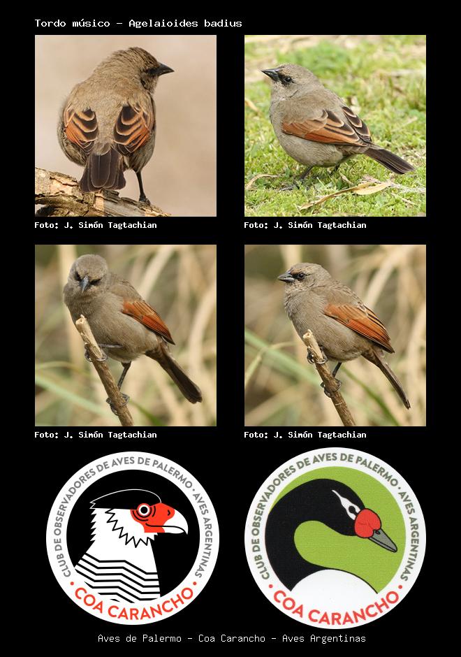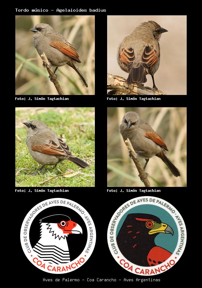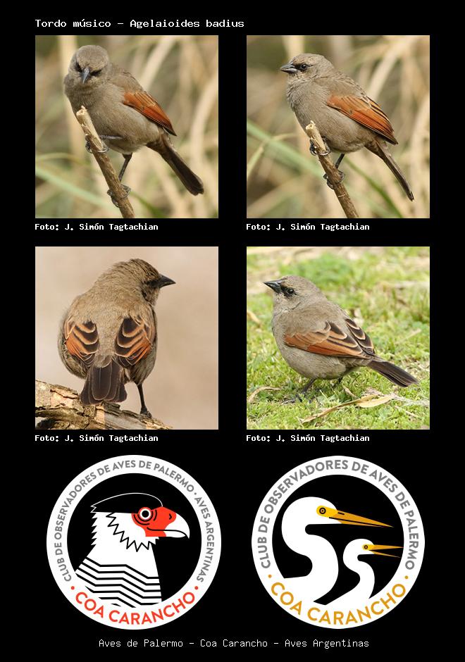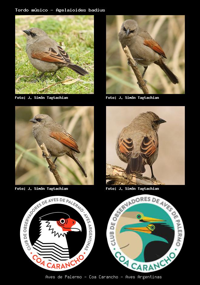 | Tordo músico Bay-winged Cowbird Agelaioides badius Familia: Icteridae Código: 8610 - Orden: 87 | ![]() J. Simón Tagtachian | ![]() J. Simón Tagtachian |