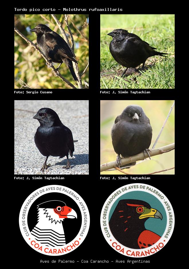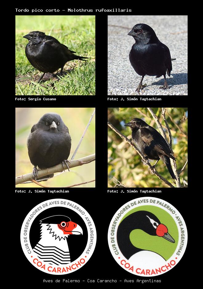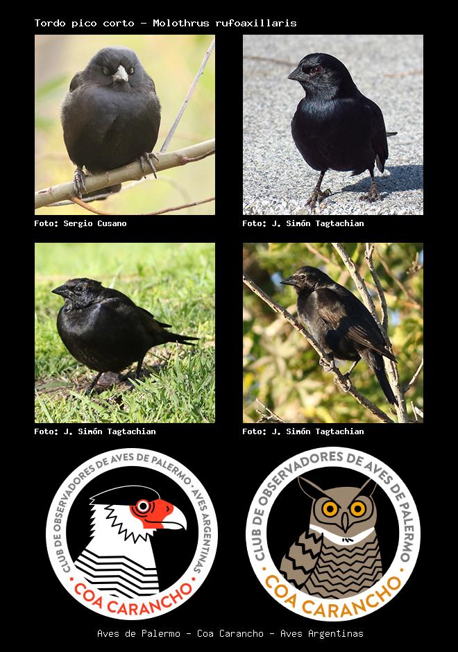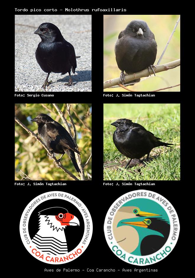 | Tordo pico corto Screaming Cowbird Molothrus rufoaxillaris Familia: Icteridae Código: 8611 - Orden: 88 | ![]() Sergio Cusano | ![]() J. Simón Tagtachian |