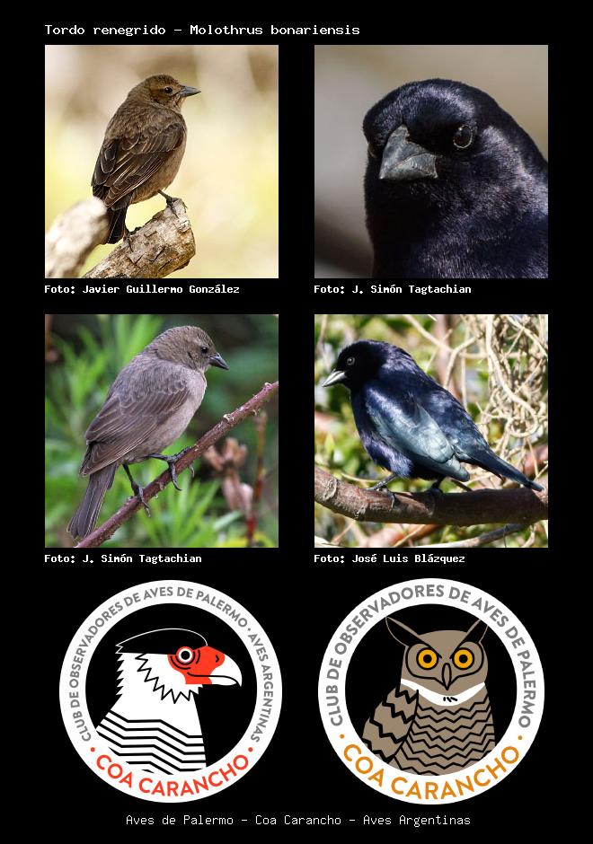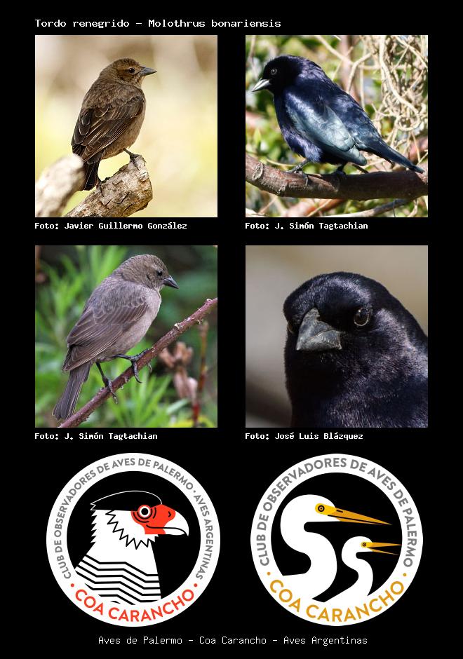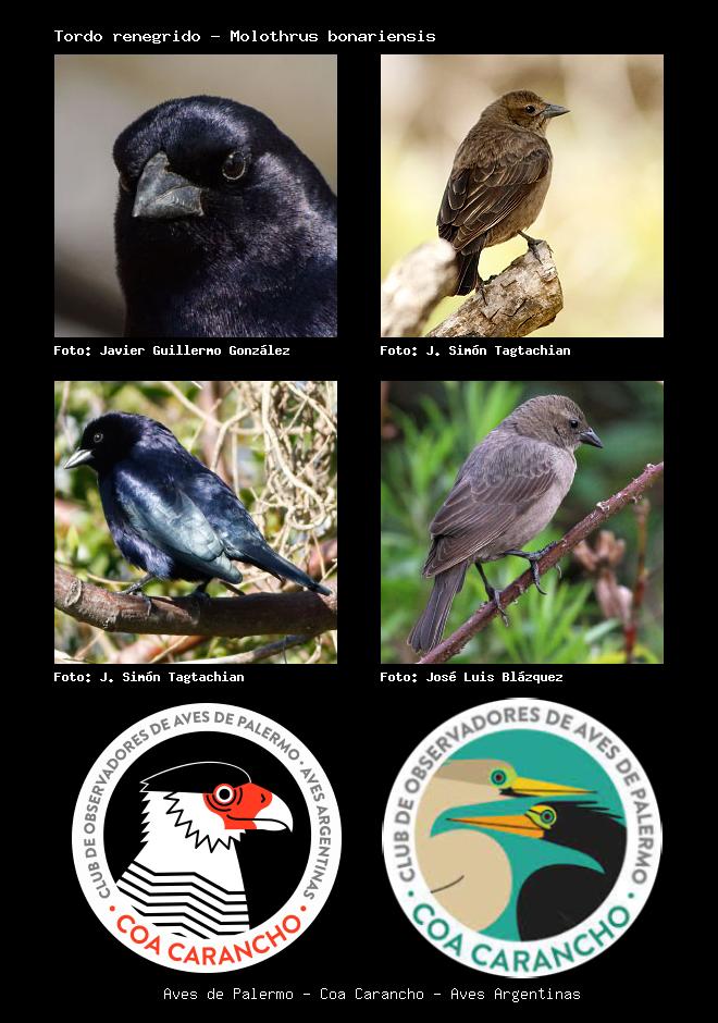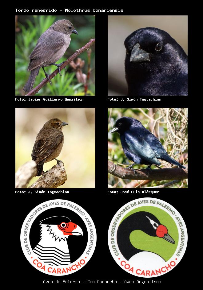 | Tordo renegrido Shiny Cowbird Molothrus bonariensis Familia: Icteridae Código: 8612 - Orden: 89 | ![]() Javier Guillermo González | ![]() J. Simón Tagtachian |