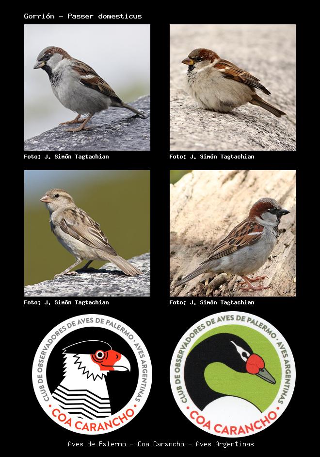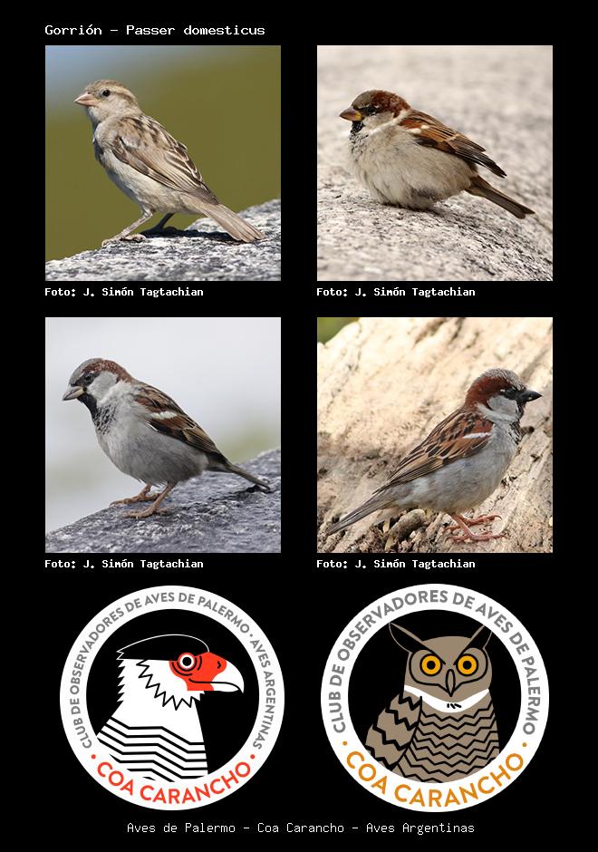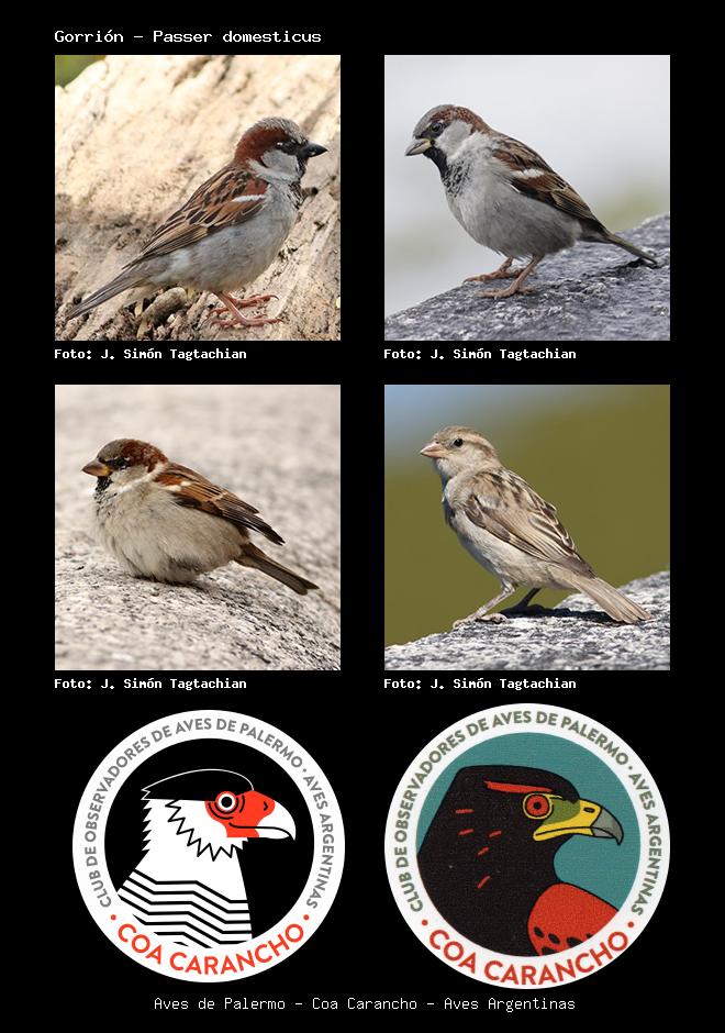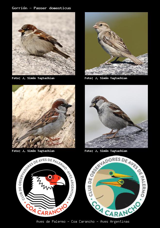 | Gorrión House Sparrow Passer domesticus Familia: Passeridae Código: 8801 - Orden: 54 | ![]() J. Simón Tagtachian | ![]() J. Simón Tagtachian |