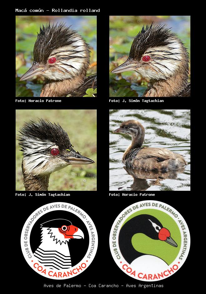 | Macá cara blanca White-tufted Grebe Rollandia rolland Familia: Podicipedidae Código: 1501 - Orden: 59 | ![]() Horacio Patrone | ![]() J. Simón Tagtachian |