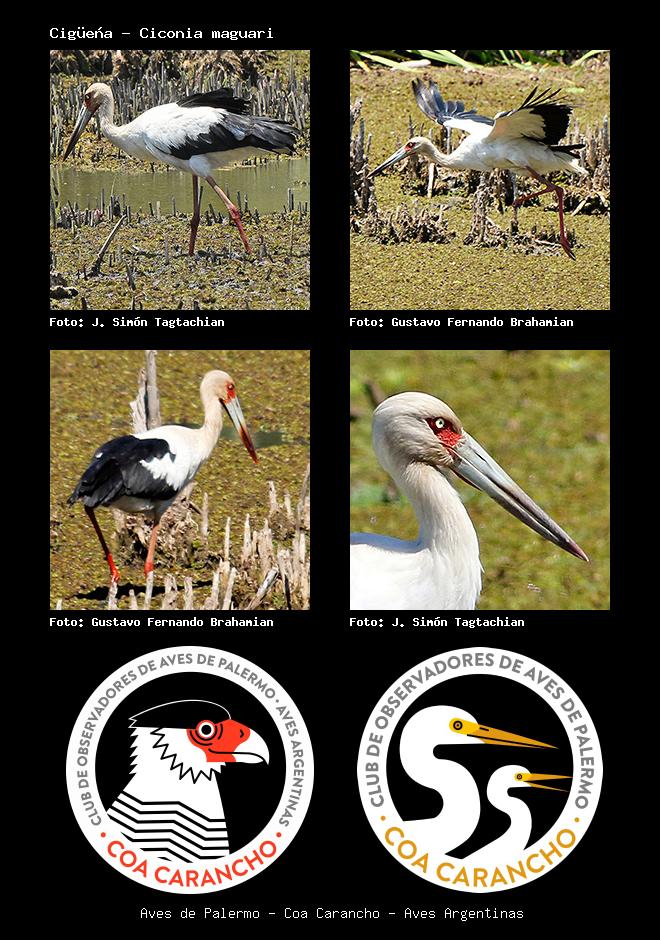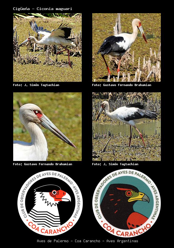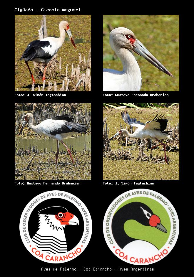 | Cigüeña Maguari Stork Ciconia maguari Familia: Ciconiiade Código: 2101 - Orden: 28 | ![]() J. Simón Tagtachian | ![]() Gustavo Fernando Brahamian |