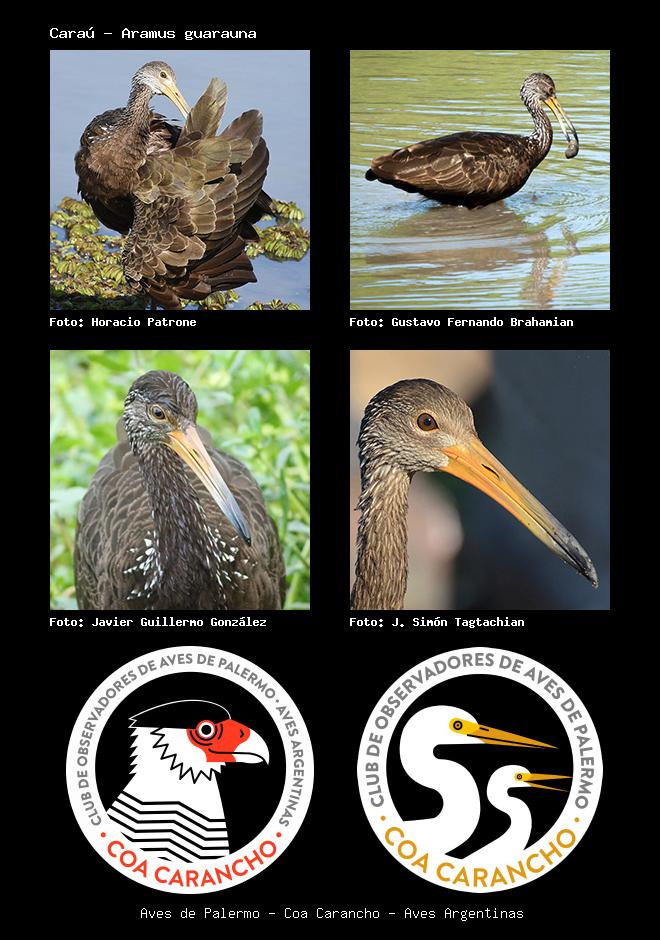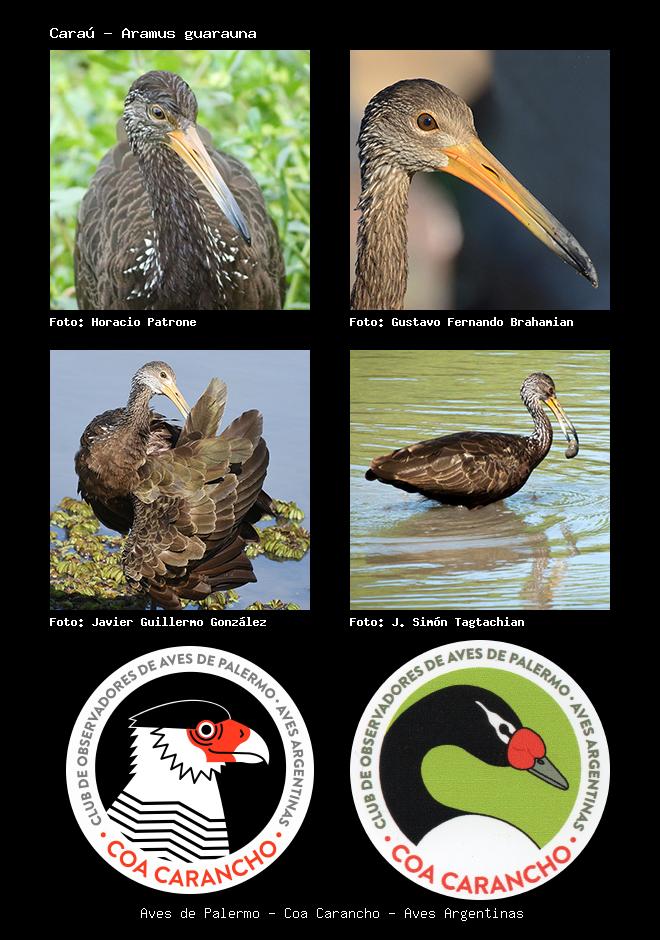 | Caraú Limpkin Aramus guarauna Familia: Aramidae Código: 3101 - Orden: 13 | ![]() Horacio Patrone | ![]() Gustavo Fernando Brahamian |
