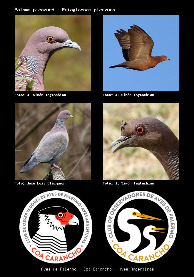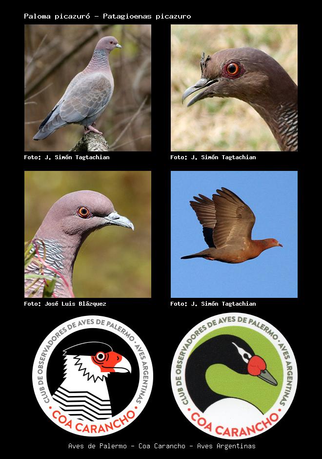 | Paloma picazuró Picazuro Pigeon Patagioenas picazuro Familia: Columbidae Código: 4504 - Orden: 67 | ![]() J. Simón Tagtachian | ![]() J. Simón Tagtachian |