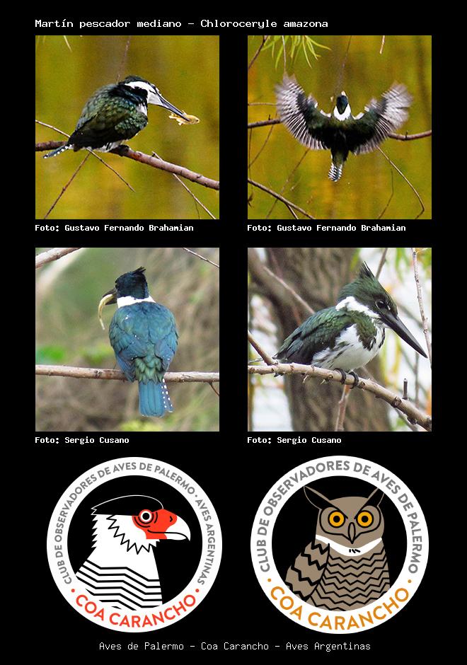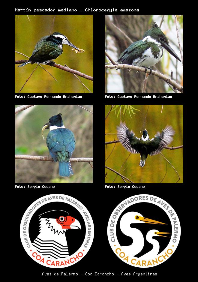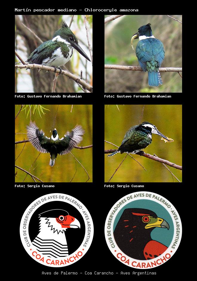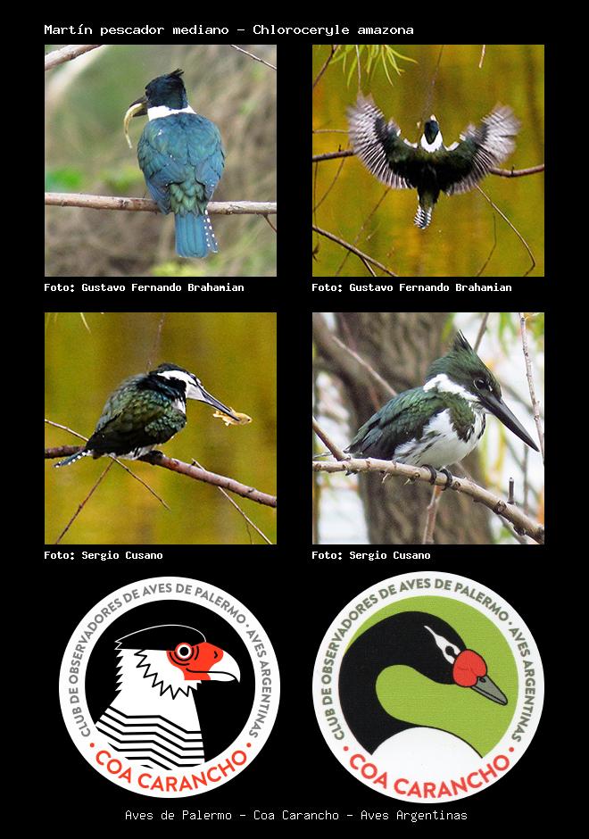 | Martín pescador mediano Amazon Kingfisher Chloroceryle amazona Familia: Alcedinidae Código: 5303 - Orden: 64 | ![]() Gustavo Fernando Brahamian | ![]() Gustavo Fernando Brahamian |