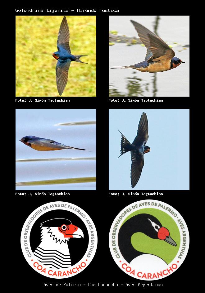 | Golondrina tijerita Barn Swallow Hirundo rustica Familia: Hirundinidae Código: 7108 - Orden: 53 | ![]() J. Simón Tagtachian | ![]() J. Simón Tagtachian |
