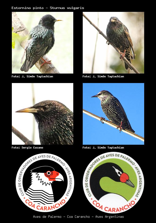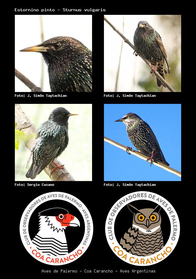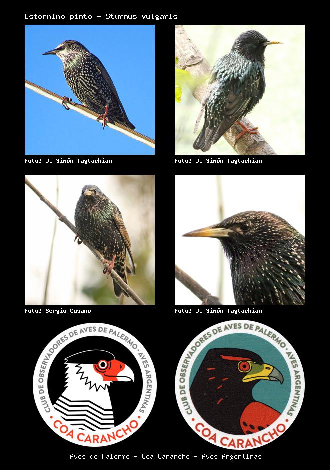 | Estornino pinto European Starling Sturnus vulgaris Familia: Sturnidae Código: 7701 - Orden: 34 | ![]() J. Simón Tagtachian | ![]() J. Simón Tagtachian |