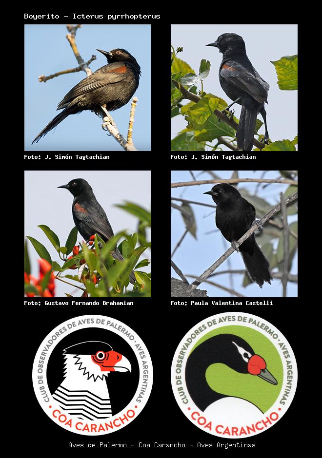 | Boyerito Variable Oriole Icterus pyrrhopterus Familia: Icteridae Código: 8604 - Orden: 6 | ![]() J. Simón Tagtachian | ![]() J. Simón Tagtachian |