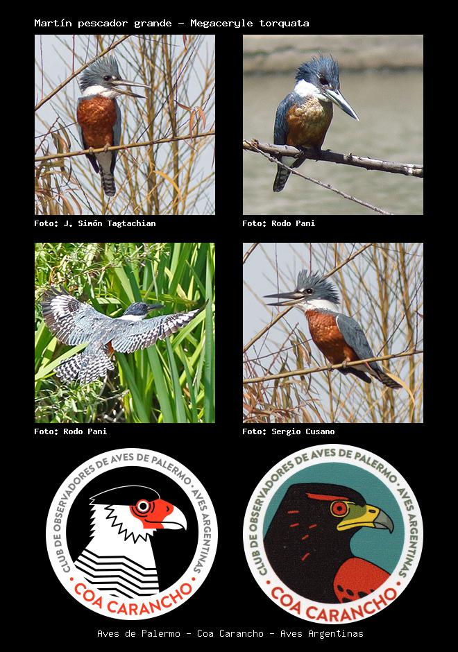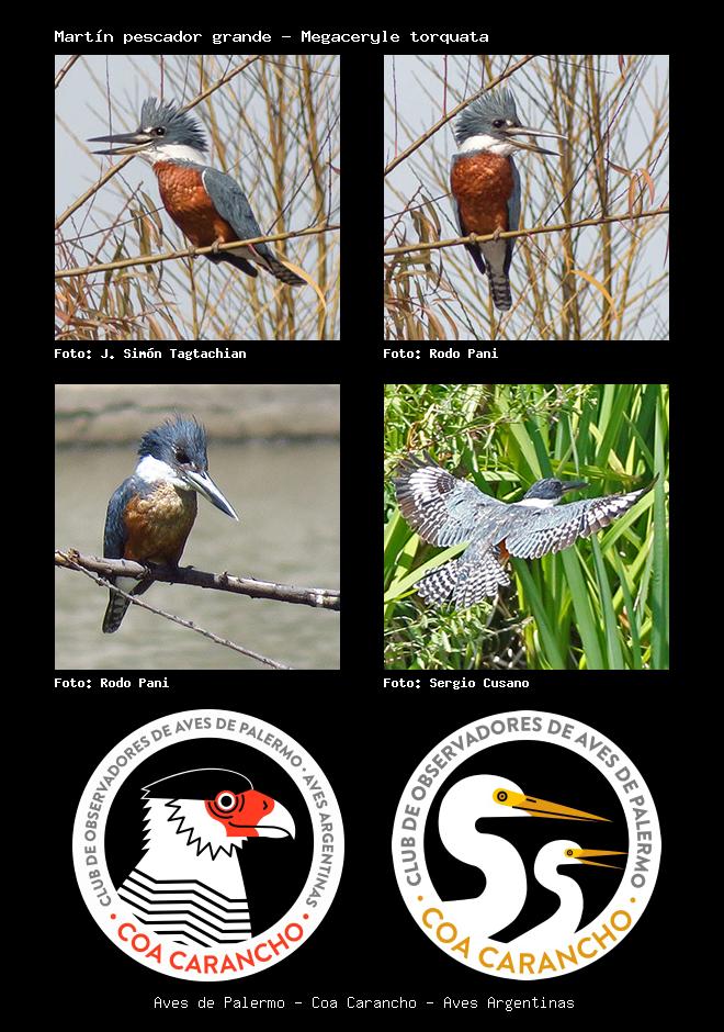 | Martín pescador grande Ringed Kingfisher Megaceryle torquata Familia: Alcedinidae Código: 5301 - Orden: 63 | ![]() J. Simón Tagtachian | ![]() Rodo Pani |