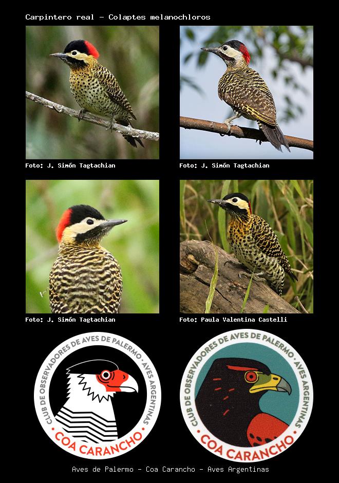 | Carpintero real Green-barred Woodpecker Colaptes melanochloros Familia: Picidae Código: 5503 - Orden: 18 | ![]() J. Simón Tagtachian | ![]() J. Simón Tagtachian |