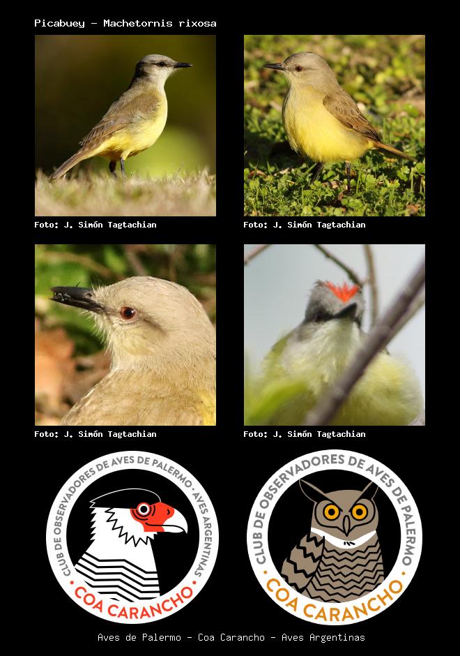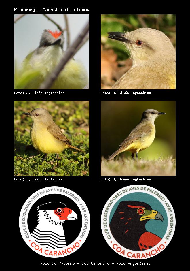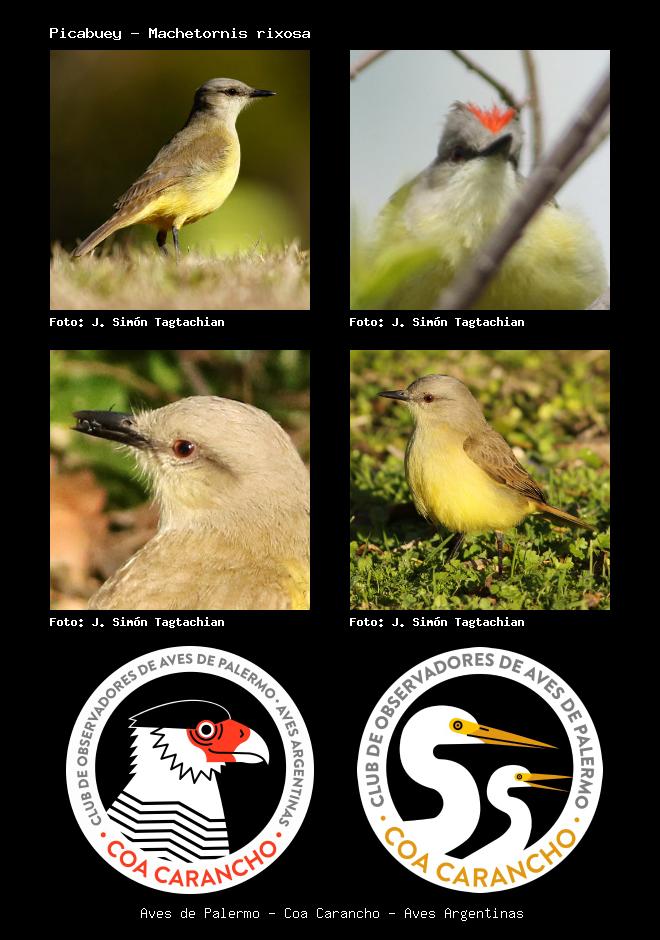 | Picabuey Cattle Tyrant Machetornis rixosa Familia: Tyrannidae Código: 6428 - Orden: 72 | ![]() J. Simón Tagtachian | ![]() J. Simón Tagtachian |