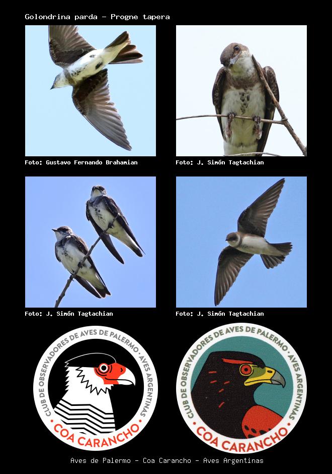 | Golondrina parda Brown-chested Martin Progne tapera Familia: Hirundinidae Código: 7103 - Orden: 52 | ![]() Gustavo Fernando Brahamian | ![]() J. Simón Tagtachian |