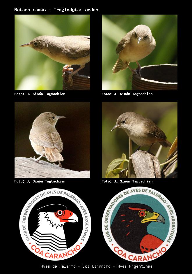 | Ratona común House Wren Troglodytes aedon Familia: Troglodytidae Código: 7201 - Orden: 80 | ![]() J. Simón Tagtachian | ![]() J. Simón Tagtachian |