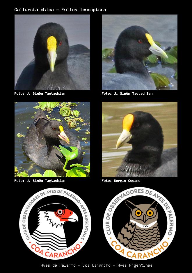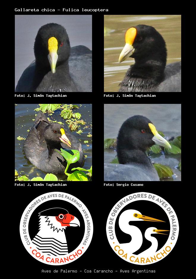 | Gallareta chica White-winged Coot Fulica leucoptera Familia: Rallidae Código: 3212 - Orden: 36 | ![]() J. Simón Tagtachian | ![]() J. Simón Tagtachian |