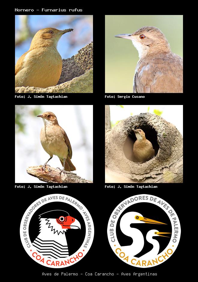 | Hornero Rufous Hornero Furnarius rufus Familia: Furnaridae Código: 6302 - Orden: 56 | ![]() J. Simón Tagtachian | ![]() Sergio Cusano |