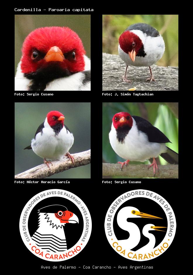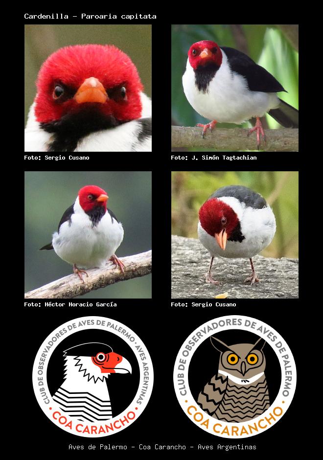 | Cardenilla Yellow-billed Cardinal Paroaria capitata Familia: Thraupidae Código: 7902 - Orden: 15 | ![]() Sergio Cusano | ![]() J. Simón Tagtachian |