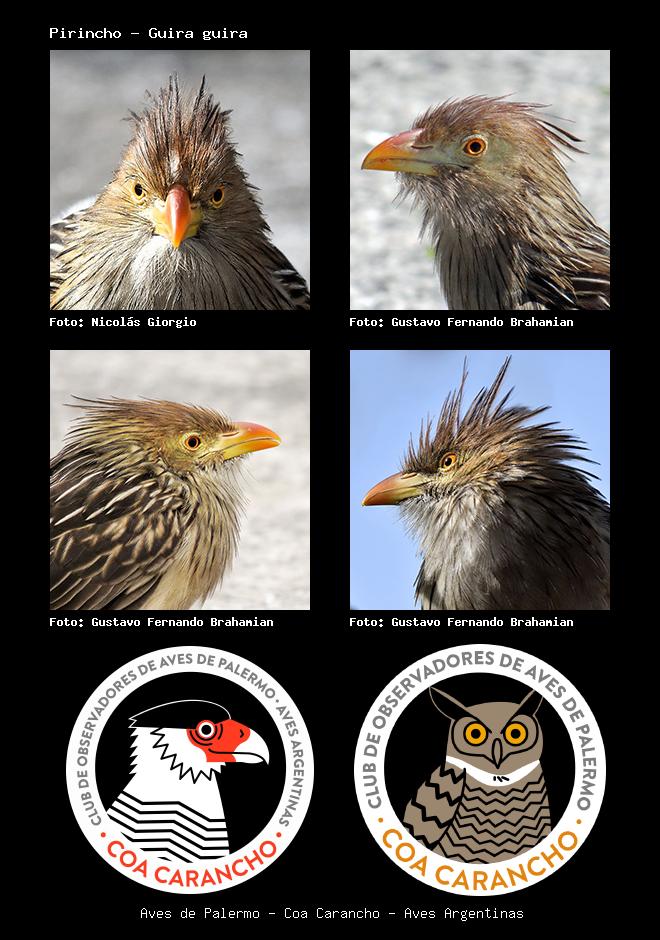 | Pirincho Guira Cuckoo Guira guira Familia: Cuculidae Código: 4606 - Orden: 77 | ![]() Nicolás Giorgio | ![]() Gustavo Fernando Brahamian |