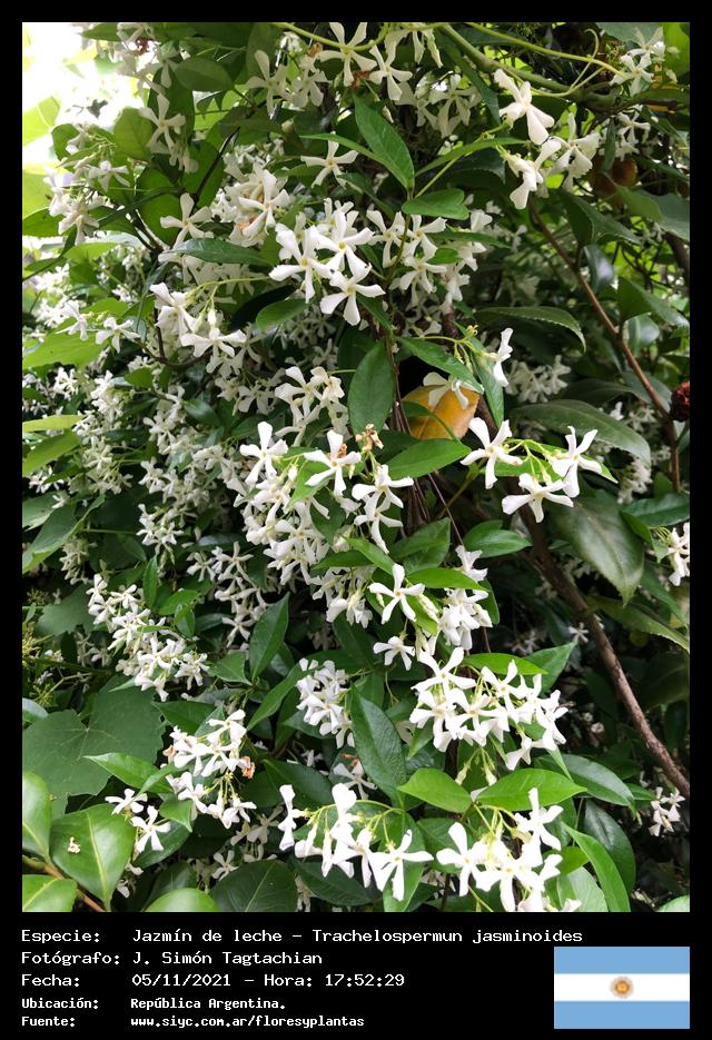 Jazmín de leche - Jazmín hélice - (Trachelospermun jasminoides) - Especie exótica para Argentina
